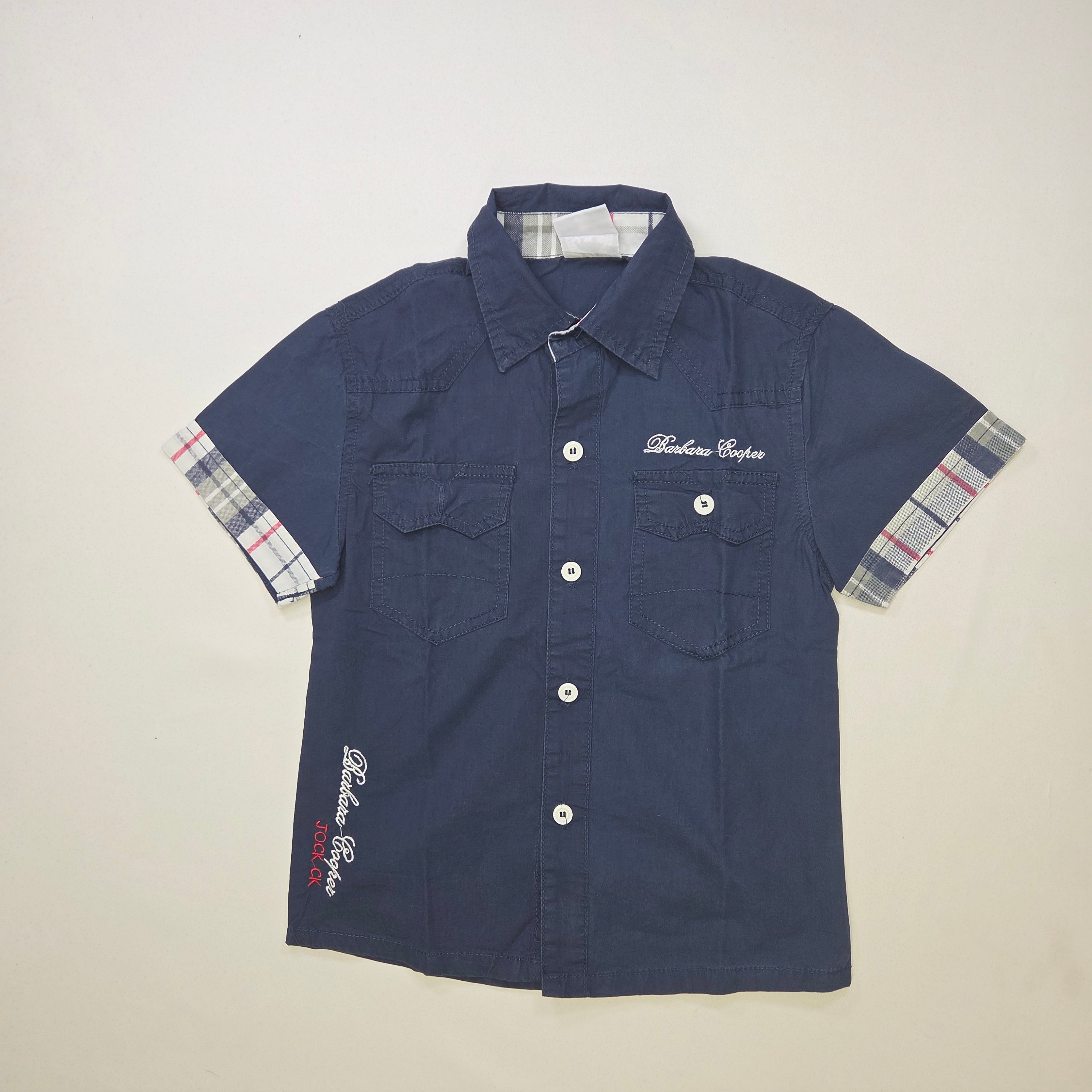 Questo elegante shirt a maniche corte, firmato "Lithuanian Style", è il perfetto alleato per le avventure estive dei tuoi bimbi! Realizzato in morbido cotone, è caratterizzato da un vivace colore blu scuro che si abbina facilmente a qualsiasi pantalone o bermuda. La trama a quadri delle maniche, in abbinamento al colletto, aggiunge un tocco di stile casual e trendy.