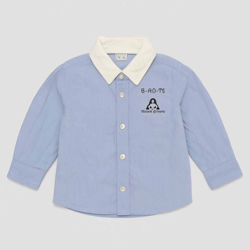 Questa adorabile camicia per bambini è un vero classico! Realizzata in morbido cotone, presenta un delicato motivo azzurro che la rende perfetta per ogni occasione. Il colletto bianco a contrasto aggiunge un tocco di eleganza, mentre il ricamo “B.B.B.T.S” sul petto le conferisce un pizzico di personalità.
