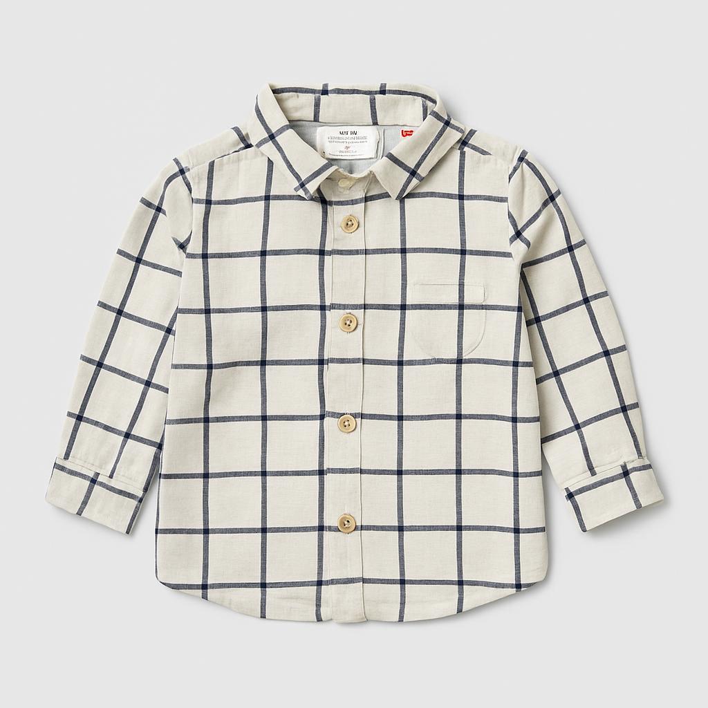 Questa adorabile camicia a quadri in tonalità beige e blu è un’aggiunta versatile al guardaroba del tuo bambino! Realizzata in un cotone morbido e leggero, è perfetta per le mezze stagioni. Con un colletto elegante, bottoni frontali e maniche lunghe, offre un look casual-chic, ideale per le occasioni più informali o una passeggiata nel parco. Nonostante sia usata, si presenta in ottime condizioni, pronta per nuovi avventure! Aggiungila al guardaroba di tuo figlio e lascia che esprima il suo stile unico!