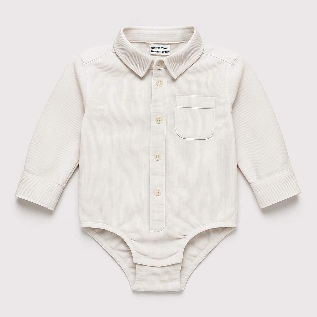 Questo adorabile body a maniche lunghe è un autentico capo di stile per i piccoli gentlemen! Realizzato in cotone morbido di colore bianco, il body presenta un colletto elegante e una pratica chiusura a bottoni sul davanti. Perfetto per occasioni speciali o semplicemente per aggiungere un tocco chic a un look casual. Il design è completato da un taschino sul lato sinistro, che aggiunge un tocco di classe. Anche se è un pezzo usato, è in ottime condizioni, ideale per i piccoli che amano essere alla moda mantenendo il comfort. Un vero must-have nel guardaroba dei tuoi bimbi!
