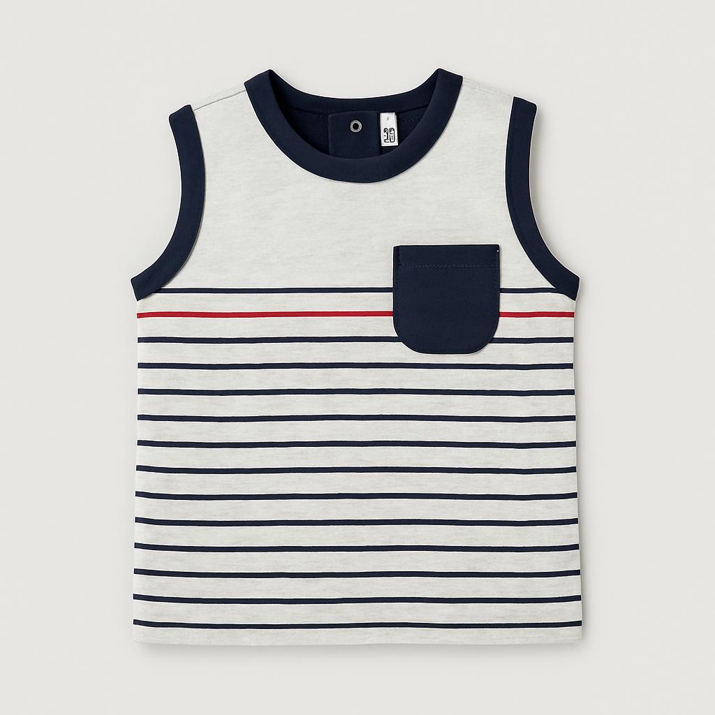 Questa simpatica canotta a righe è il capo perfetto per il tuo piccolo marittimo! Realizzata in un cotone leggero e morbido, presenta una combinazione di tonalità navy, grigio e un tocco di rosso che aggiunge vivacità. La taschina sul petto è un dettaglio trendy e pratico, mentre il design senza maniche consente libertà di movimento, ideale per le calde giornate estive. Nonostante sia un capo usato, si trova in ottime condizioni e porterà un sorriso sul volto del tuo bimbo, rendendolo pronto per avventure e giochi all'aperto! Un must-have casual e alla moda!
