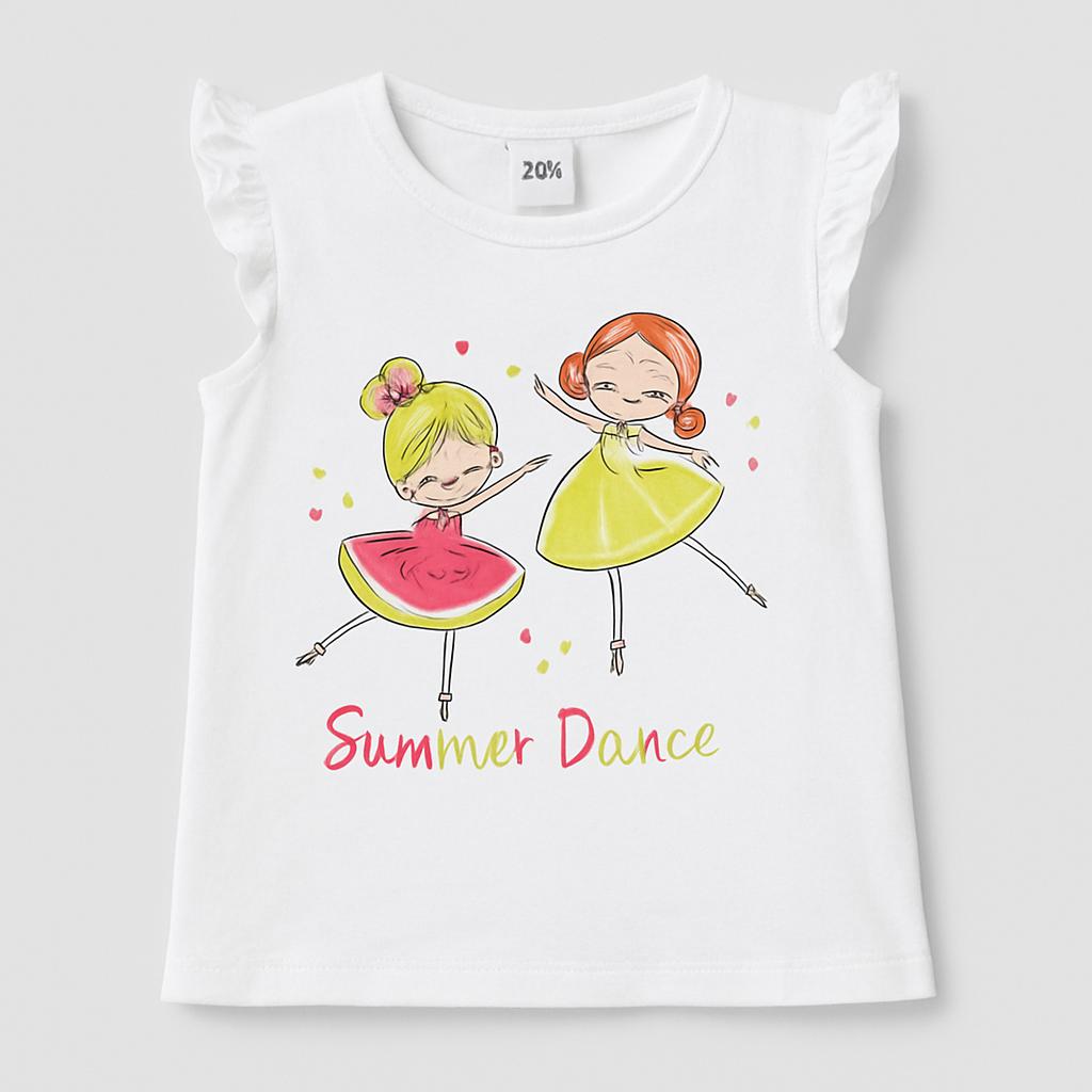 Questa adorabile t-shirt bianca è un sogno per tutte le piccole ballerine! Con un incantevole motivo che ritrae due ballerine in un momento di danza, sprigiona la magia dell'estate. I delicati volant sulle spalle aggiungono un tocco femminile e divertente, rendendo questo capo perfetto per ogni ocaione, dalle feste ai giochi all'aperto. Realizzata in morbido cotone, assicura comfort e freschezza nelle giornate più calde. Anche se usata, si presenta in ottime condizioni, pronta per essere indossata da una nuova piccola amica della danza! Un’ottima scelta per chi ama muoversi con stile!