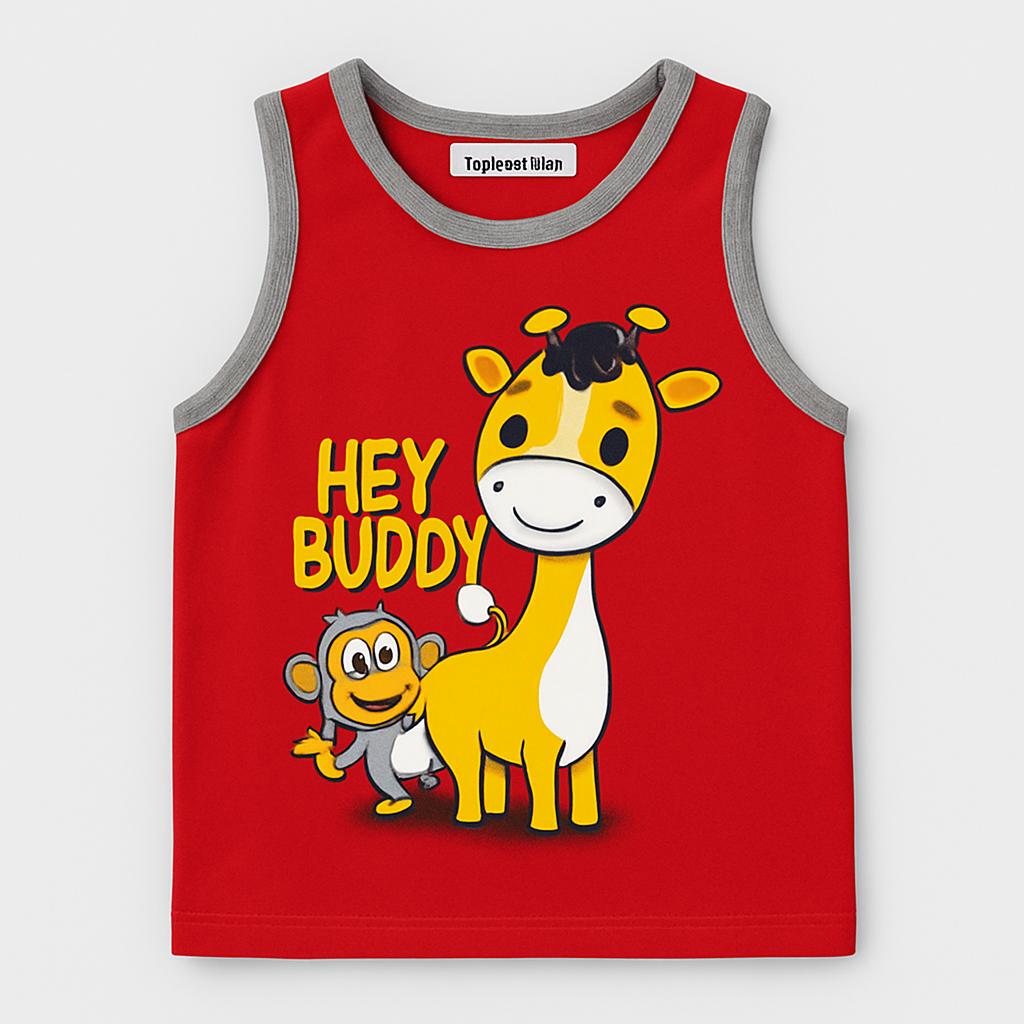 Questo adorabile canottiera rossa di Milk Pub è perfetta per le giornate di sole! Con un simpatico stampato di una giraffa e una scimmietta che invita al divertimento, è un vero inno all'allegria. Realizzata in tessuto morbido e leggero, è ideale per far giocare i più piccoli in totale comodità. Le spalline larghe e il design senza maniche assicurano freschezza, rendendola un must-have per l'estate. Nonostante sia un capo usato, si presenta in ottime condizioni, pronto per accompagnare il tuo bambino nelle sue avventure quotidiane!