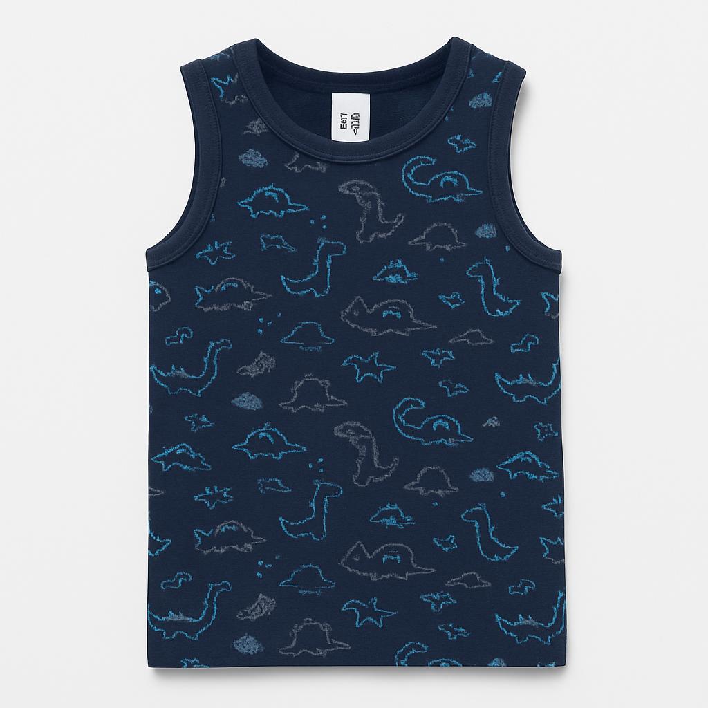 Questo adorabile canottiera per bambini è perfetta per i piccoli amanti dei dinosauri! Realizzata in morbido cotone, presenta un vivace motivo di creature preistoriche su uno sfondo blu scuro. La manica senza bracciale garantisce libertà di movimento, rendendola ideale per le avventure estive o i giochi all'aperto. Nonostante sia un capo usato, si presenta in ottime condizioni e porta con sé la freschezza di un look informale e divertente. Un must-have per i mini esploratori che vogliono esprimere il loro spirito giocoso!