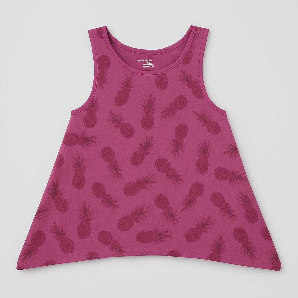 Questa vivace canotta fucsia con motivo ananas è l'ideale per le piccole amanti del divertimento! Realizzata in cotone morbido, offre un comfort eccellente durante le giornate estive. Il design allegro e colorato trasmette gioia e spensieratezza, rendendola perfetta per le avventure all'aperto o le giornate in spiaggia. I bordi asimmetrici aggiungono un tocco trendy al look. Nonostante sia un capo usato, si presenta in buone condizioni, pronta per diventare il preferito del guardaroba! Un must-have per ogni piccola fashionista!