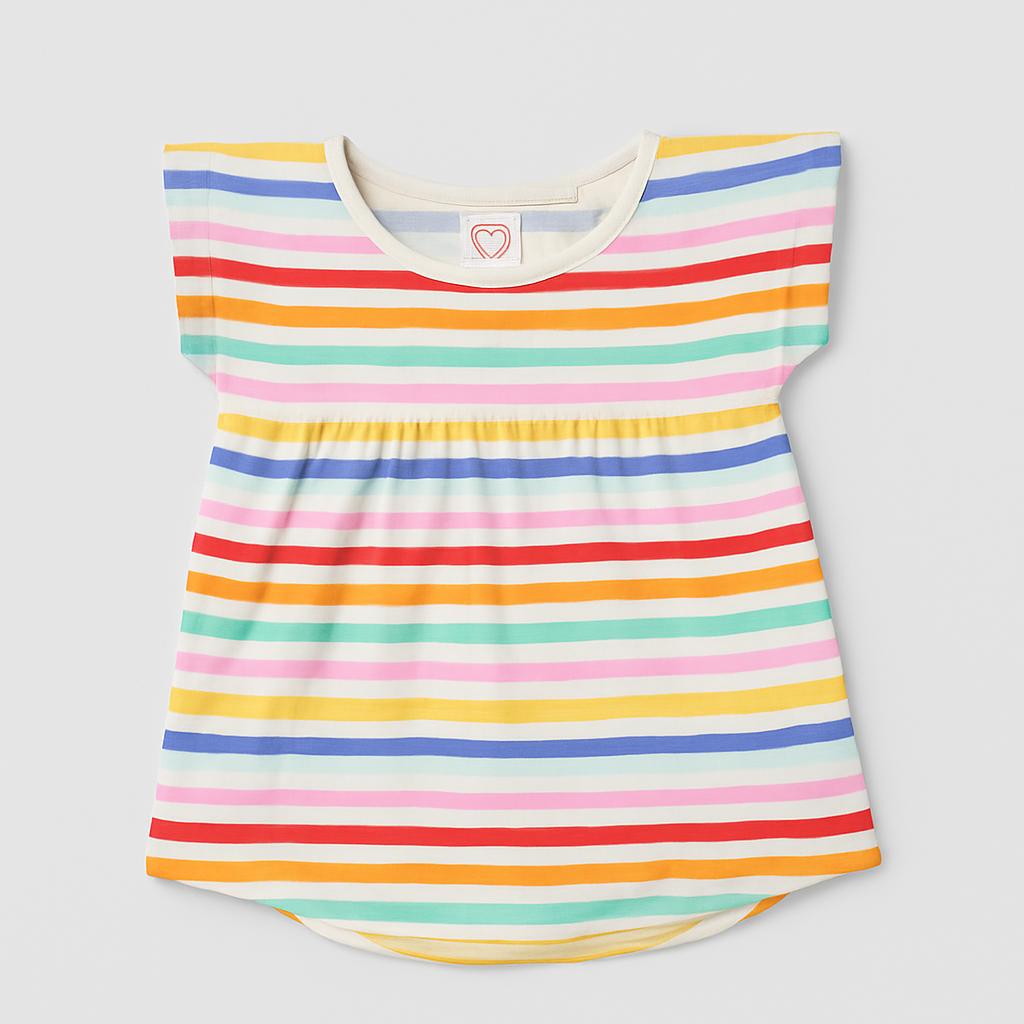 Questa deliziosa maglia a righe colorate è un'aggiunta vivace al guardaroba delle tue piccole! Realizzata in morbido cotone, presenta una combinazione di righe in tonalità pastello che portano un sorriso e tanto buonumore. Il taglio comodo e le maniche a palloncino la rendono perfetta per ogni avventura estiva, dai giochi al parco a una giornata al mare. Nonostante sia un capo già amato, si presenta in ottime condizioni, pronta a regalare nuove emozioni! Un must-have per le piccole trendsetter che vogliono divertirsi con stile!