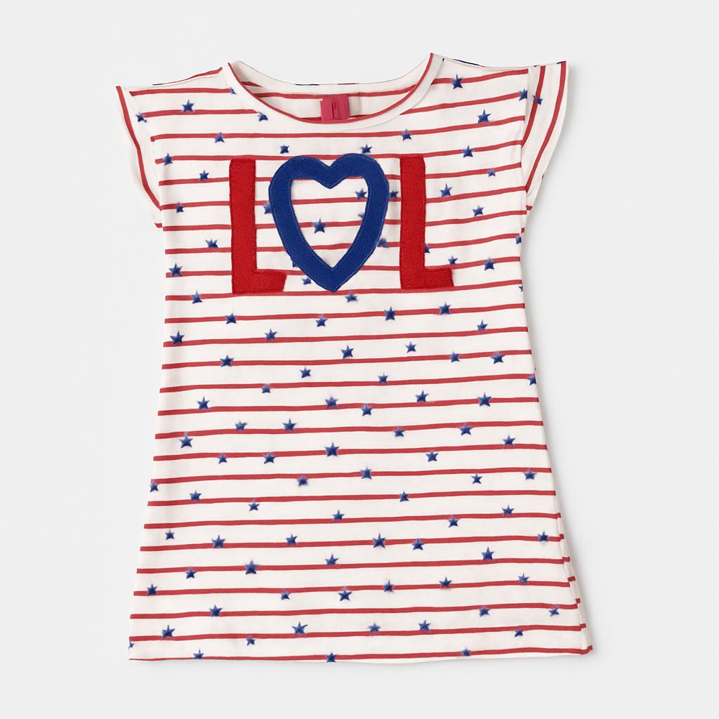 Fai brillare il guardaroba della tua bimba con questa adorabile t-shirt a righe! Caratterizzata da un mix vivace di rosso e blu, presenta una divertente scritta "LOL" con un cuore che trasmette amore e gioia. Le stelle blu aggiungono un tocco di magia, rendendo questa maglietta perfetta per ogni piccola sognatrice. Realizzata in un morbido cotone, offre comfort e libertà di movimento, ideale per i giochi all'aperto. Nonostante sia un capo usato, è in ottime condizioni e pronta a diventare il preferito della tua modaquina!