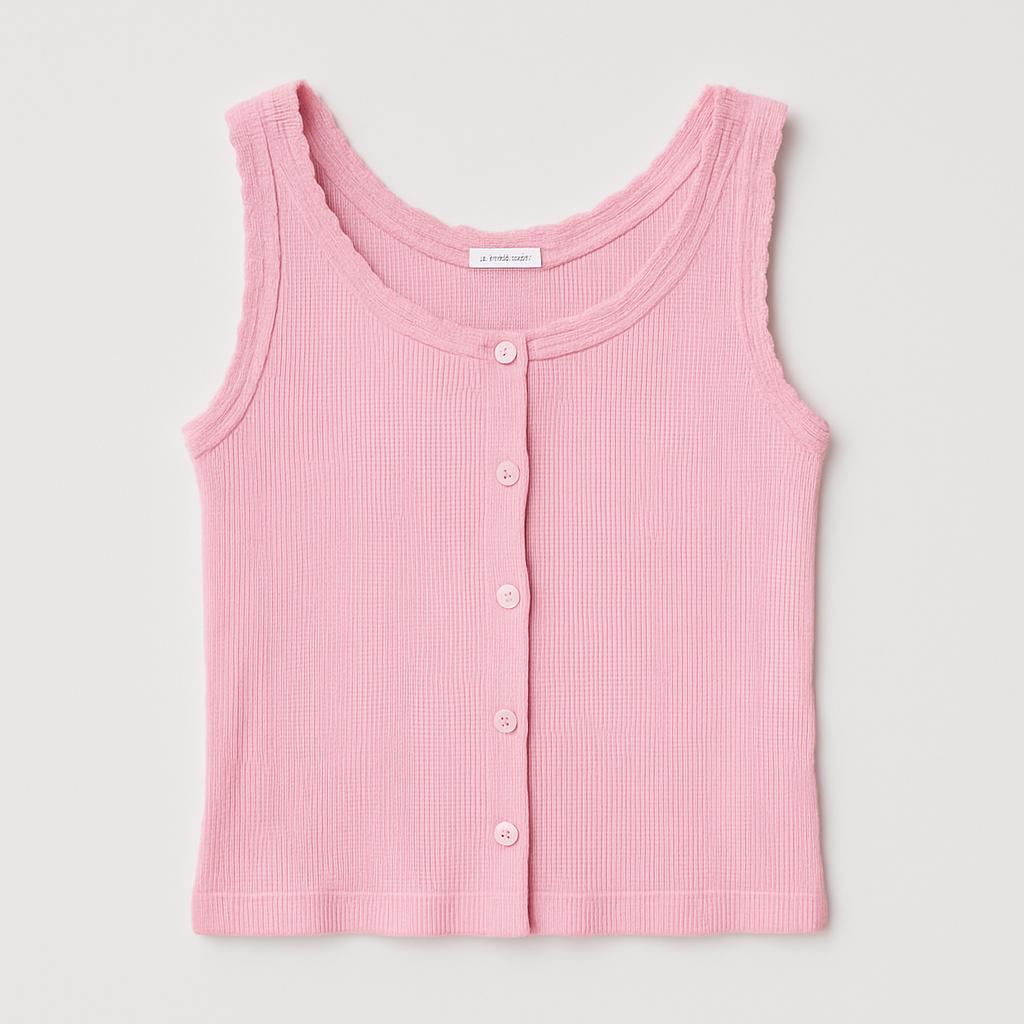 Questo adorabile top senza maniche è perfetto per le calde giornate estive! Realizzato in un morbido tessuto a costine, il suo delicato colore rosa mette subito di buon umore. Con una pratica chiusura a bottoni sul davanti e un bordo arricciato sui lati, aggiunge un tocco di freschezza e dolcezza al look della tua piccola. Anche se si tratta di un capo usato, si presenta in ottime condizioni e sarà senza dubbio un'aggiunta versatile al guardaroba estivo. Ideale per giocare all'aperto o per un picnic con gli amici, questo top è un must-have per ogni piccola fashionista!
