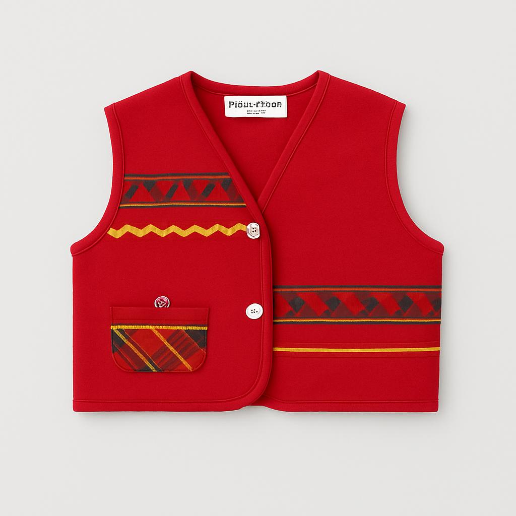 Questo adorabile gilet rosso è un capo vintage che porterà calore e stile al guardaroba del tuo bambino! Realizzato in un morbido tessuto, il gilet è abbellito da dettagli colorati e vivaci motivi, perfetto per aggiungere un tocco di allegria a qualsiasi outfit. Con il suo taglio senza maniche, è ideale da indossare sopra magliette o camicie per un look versatile e accogliente. Nonostante sia un pezzo usato, è in ottime condizioni e pronto per essere amato da un piccolo esploratore! Un outfit unico per affrontare ogni avventura!