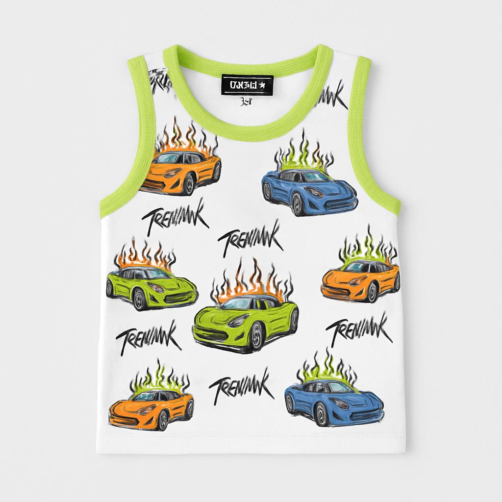 Questa divertente canotta di marca Ramo è perfetta per i piccoli amanti delle auto! Realizzata in cotone morbido, offre comfort e freschezza durante i caldi giorni estivi. Il bianco splendente fa da sfondo a un vivace motivo con auto stilizzate in verde, arancione e blu, circondate da fiamme ardenti di colore neon che aggiungono un tocco di avventura. Il bordo verde chiaro delle armature completa il look con un dettaglio trendy. Questo capo usato è in ottime condizioni e sarà un'aggiunta ideale al guardaroba di ogni bambino dinamico, pronto a sfrecciare in ogni avventura!
