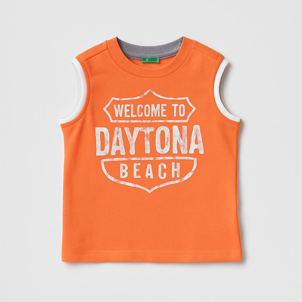 Questa vivace canotta arancione è perfetta per i piccoli avventurieri! Con il suo design senza maniche, offre freschezza e libertà di movimento per le giornate estive. La scritta "WELCOME TO DAYTONA BEACH" sul fronte aggiunge un tocco di spirito vacanziero e divertente. Realizzata in morbido cotone, è comoda e resistente, ideale per le esplorazioni all'aperto o per un look casual. Nonostante sia un capo usato, si presenta in ottime condizioni e porterà un sorriso a chi la indossa! Un must-have per i piccoli viaggiatori!