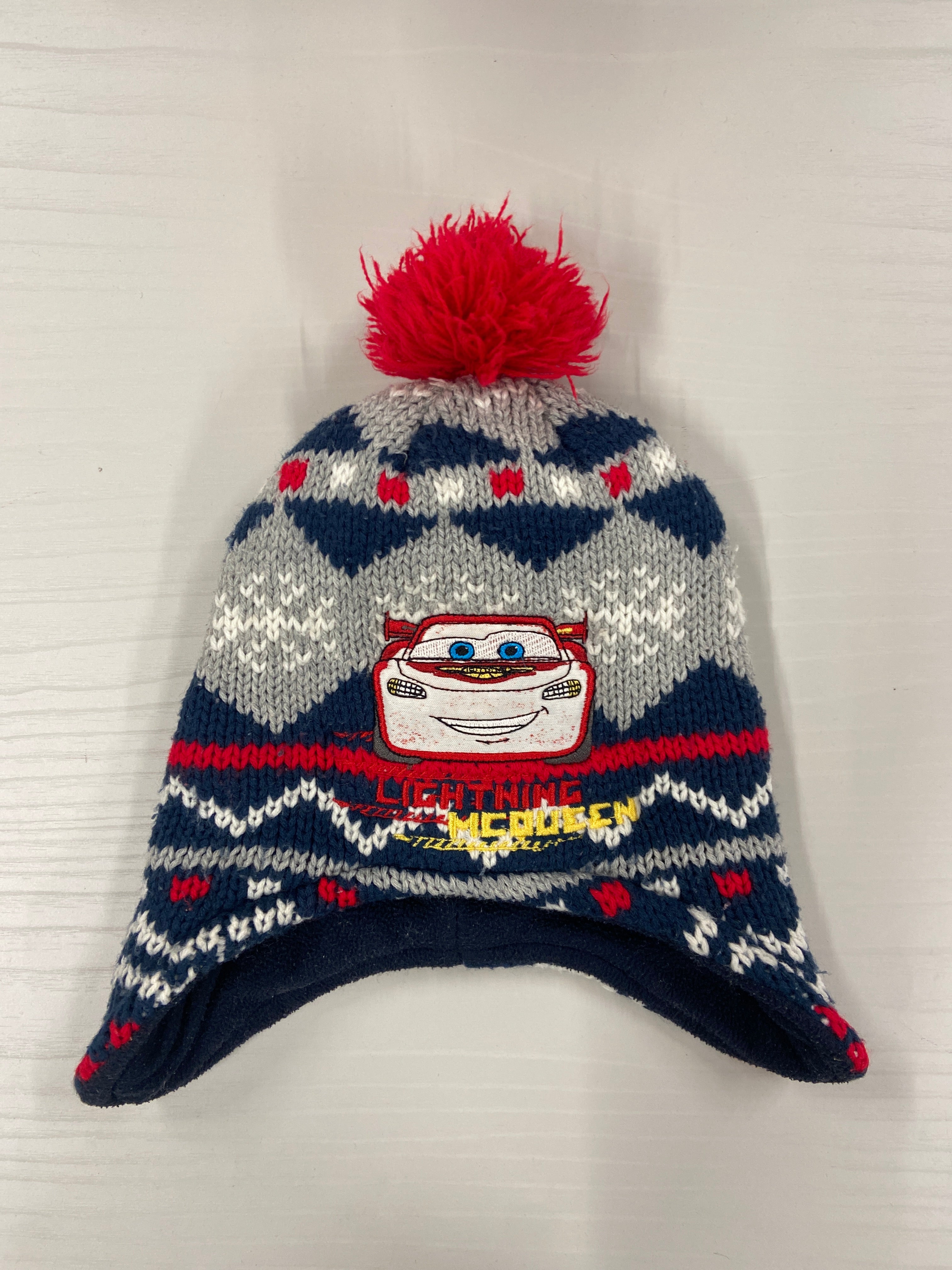 Scopri il cappellino perfetto per gli amanti delle avventure! Questo caldo e accogliente berretto presenta un design ispirato al famoso personaggio di Cars, Lightning McQueen. Realizzato in maglia morbida, è decorato con un vivace pompon rosso sulla parte superiore e una simpatica applicazione che cattura immediatamente l'attenzione. I toni blu e grigio, uniti a dettagli rossi, lo rendono ideale per l'inverno. Anche se usato, è in ottime condizioni e pronto a scaldare la testa del tuo piccolo nei giorni freddi! Non perdere l'occasione di regalargli stile e calore!