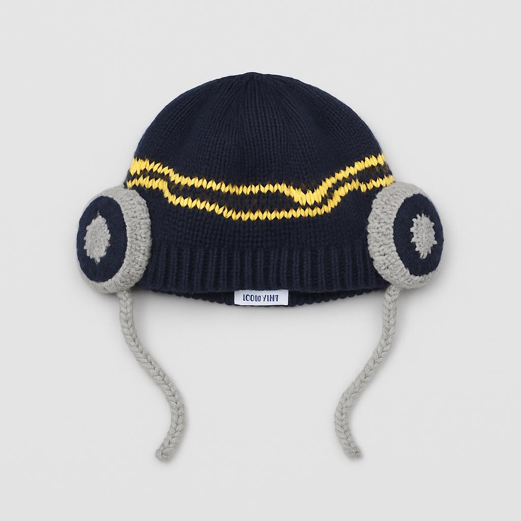 Questo adorabile cappellino in maglia è il capo perfetto per tenere al caldo la testa dei più piccoli durante le fredde giornate invernali! Realizzato in un morbido tessuto blu scuro, è impreziosito da simpatici dettagli grigi e gialli che richiamano un paio di cuffie. Le orecchie di pelliccia aggiungono un tocco di divertimento e lo rendono perfetto per ogni avventura all'aria aperta. Con i suoi laccetti laterali, si adatta comodamente e resta fermo anche durante i giochi più vivaci. Nonostante sia usato, si presenta in ottime condizioni, pronto per essere indossato e far brillare il sorriso del tuo piccolo!