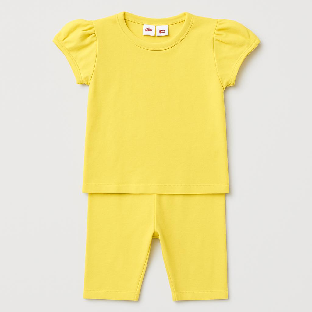 Questo adorabile completo in cotone giallo è perfetto per le piccole esploratrici! La maglietta ha un delizioso design a maniche corte con graziosi volant che aggiungono un tocco di stile. I leggings abbinati, comodi e morbidi, garantiscono una vestibilità perfetta per giocare e muoversi liberamente. Il vivace colore giallo illumina le giornate più grigie ed è ideale per le avventure estive. Anche se usato, questo set si presenta in ottime condizioni, pronto per accompagnare qualsiasi piccola fashionista in nuove avventure!