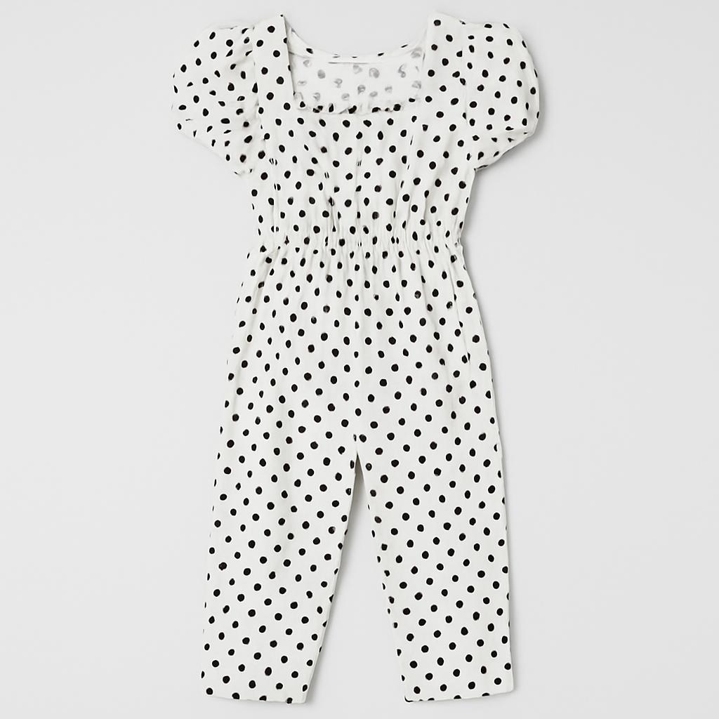 Questa adorabile salopette a pois è perfetta per le piccole trendsetter! Realizzata in un leggero tessuto, presenta una base bianca decorata da simpatici pois neri. Le maniche a sbuffo aggiungono un tocco giocoso, rendendo ogni movimento ancora più frizzante! La vita elastica garantisce comfort e praticità, mentre il design elegante la rende ideale per qualsiasi occasione, da un picnic nel parco a una festa di compleanno. Nonostante sia un pezzo usato, si presenta in ottime condizioni, pronta a regalare sorrisi e stile alla tua piccola!