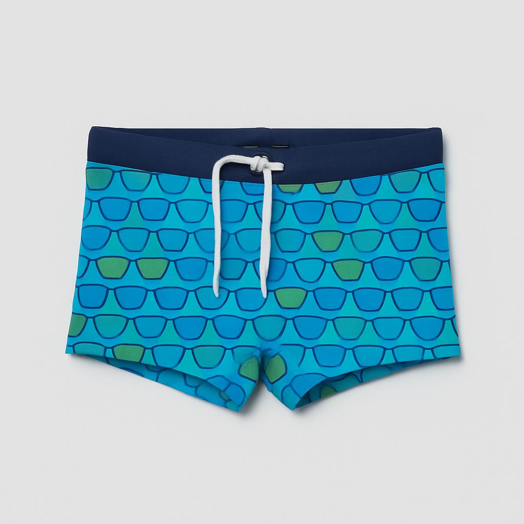 Questi vivaci boxer da bagno per bambini sono perfetti per le giornate estive al mare! Caratterizzati da un fresco motivo blu con occhiali da sole colorati, incanteranno ogni piccolo stile! Realizzati in un tessuto leggero e confortevole, garantiscono libertà di movimento per nuotare e giocare. La vita regolabile con cordino assicura una vestibilità perfetta e sicura. Nonostante siano usati, sono in ottime condizioni e pronti per affrontare nuove avventure estive! Un capo essenziale per ogni piccolo esploratore!
