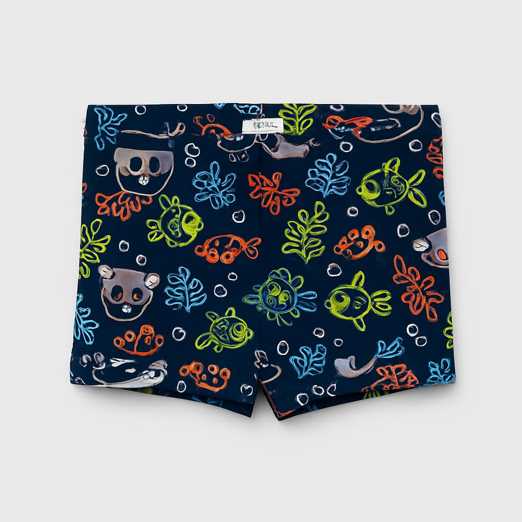 Questi fantastici boxer da bagno per bambini sono perfetti per le giornate di sole! Caratterizzati da un vivace motivo a stampa con pesci e piante marine su uno sfondo blu scuro, portano divertimento e colore in spiaggia! Realizzati in un tessuto elastico e morbido, garantiscono comfort e libertà di movimento durante il gioco. Nonostante siano usati, si trovano in ottime condizioni, pronti a accompagnare tutte le avventure estive dei tuoi piccoli. Un capolavoro di stile e praticità che non può mancare nel guardaroba estivo!