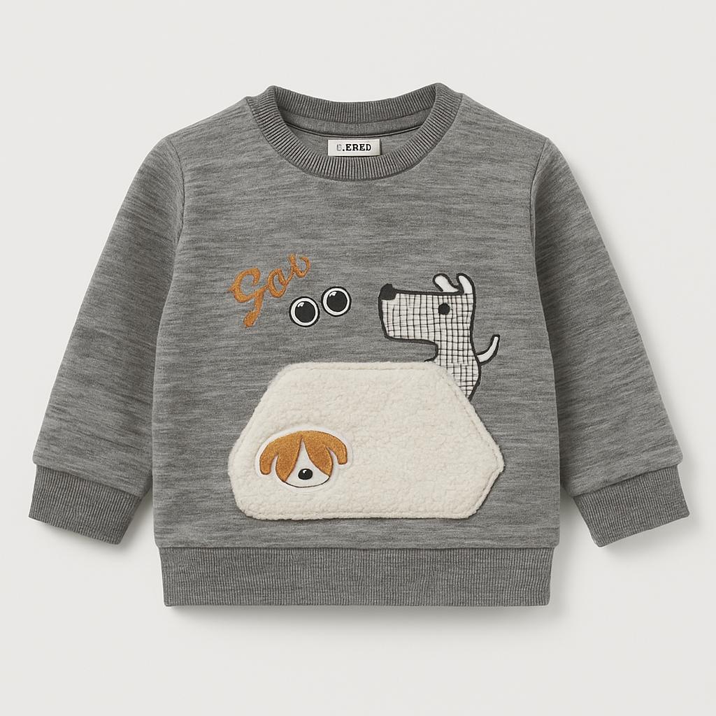 Questo adorabile felpa grigia è perfetta per il guardaroba dei più piccoli! Realizzata in un morbido e caldo tessuto, è decorata con un simpatico design raffigurante un cagnolino, che porta un sorriso sul volto di chi la indossa. Con un taglio comodo e maniche lunghe, è ideale per le giornate fresche, fornendo comfort e stile. Nonostante sia usata, si presenta in ottime condizioni e pronta per nuove avventure. Questa felpa è l'ideale per i piccoli amanti degli animali che vogliono esprimere la loro personalità giocosa!