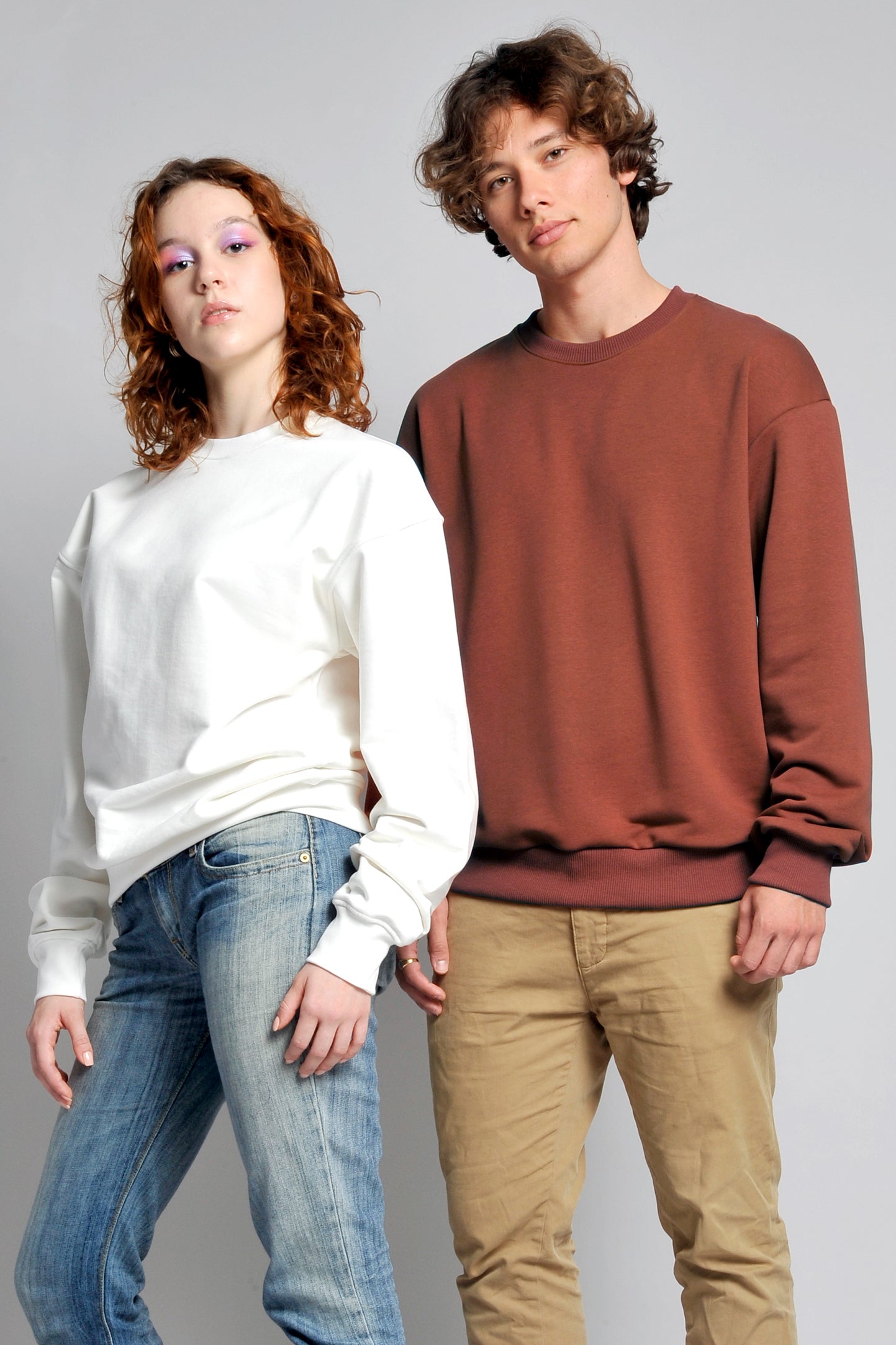 Vestibilità over con giromanica sceso - la lavorazione lenta del tessuto a trama diagonale ed il peso di 360 gr, dona una compattezza ed una consistenza che, pur non essendo garzata internamente, è ideale per l'utilizzo in tutte le stagioni dell'anno