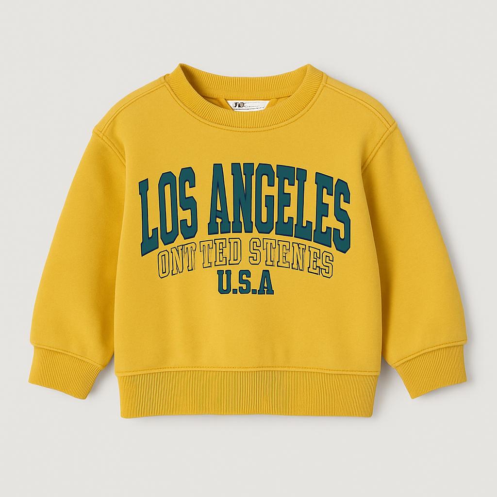 Questo simpatico e vivace felpone giallo, perfetto per le giornate fresche, porterà un sorriso nel guardaroba del tuo bambino! Con la scritta "LOS ANGELES UNITED STATES" in colori contrastanti, cattura subito l'attenzione. Il design cropped e le maniche lunghe offrono un tocco moderno e trendy, ideale per piccoli avventurieri. Nonostante sia un capo usato, si presenta in ottime condizioni, pronto per essere indossato. Un must-have per un look casual e alla moda!