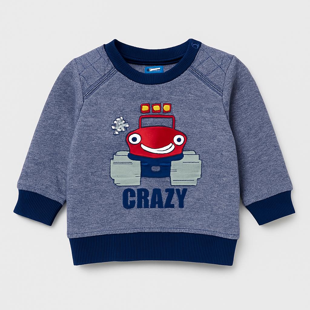Questo adorabile pullover in blu denim è perfetto per i piccoli amanti dei veicoli! Decorato con un vivace camion colorato che sorride e il testo "CRAZY", renderà ogni giornata di gioco ancora più divertente. Realizzato in un morbido tessuto, il maglione offre comfort e calore, ideale per le avventure all'aria aperta. Le maniche lunghe e il girocollo sono pratici e sfiziosi per ogni piccolino. Nonostante sia un capo usato, è in ottime condizioni e pronto per accompagnare il tuo bimbo in tanti nuovi traguardi!