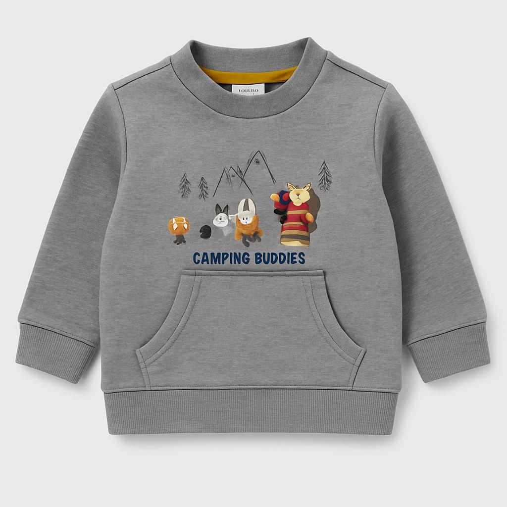 Questo fantastico pullover grigio è perfetto per le piccole avventuriere! Realizzato in morbido e caldo cotone, presenta un delizioso ricamo che celebra i "Camping Buddies", rendendolo ideale per le giornate all'aria aperta. Con un comodo collo a giro e maniche lunghe, offre libertà di movimento per correre e giocare. La pratica tasca frontale è perfetta per riporre piccoli tesori o tenere le mani al caldo. Nonostante sia un capo usato, si presenta in ottime condizioni, pronto a scaldare il guardaroba della tua bimba con un tocco di avventura!