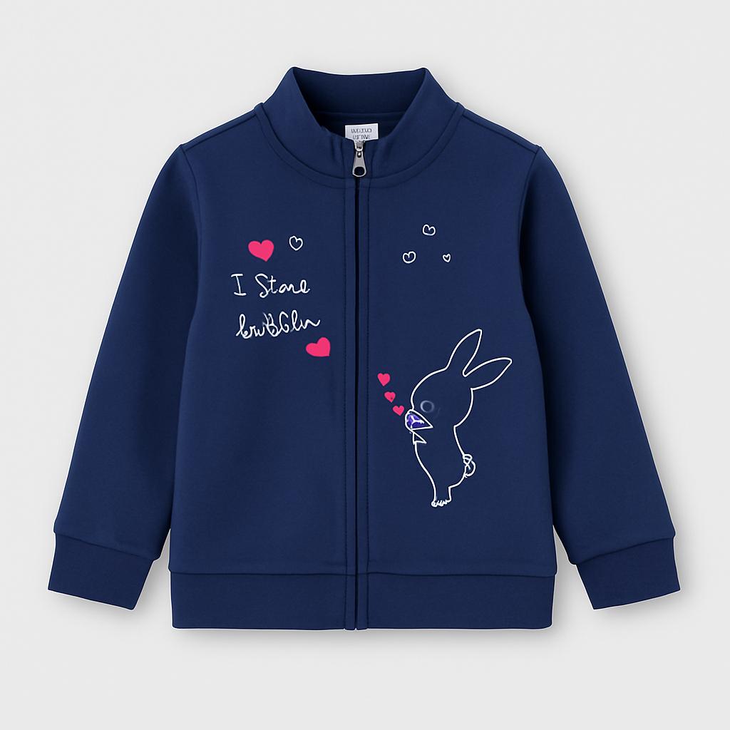 Questa deliziosa felpa con zip è un vero sogno per i più piccoli! Realizzata in morbido cotone, la felpa di colore blu notte è adornata da una graziosa stampa di un coniglietto che dichiara "I Love bubble" circondato da cuoricini. Il design cromatico e giocoso rende ogni outfit speciale. Le maniche lunghe e il colletto alto garantiscono calore e comfort durante le fresche giornate. Nonostante sia un capo usato, è in ottime condizioni e pronta per avventure invernali o pomeriggi al parco. Perfetta per tutte le piccole amanti dei coniglietti!