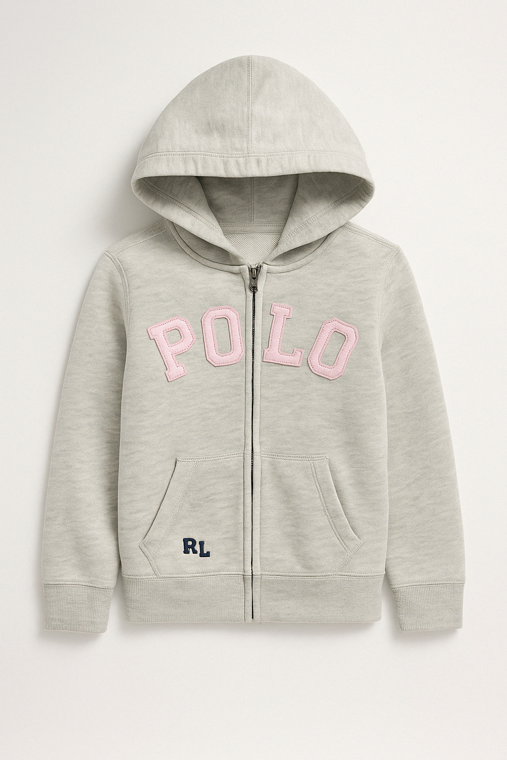 Questa adorabile felpa con cappuccio di marca POLO è perfetta per le giornate fresche! Realizzata in un morbido felpato grigio, è impreziosita da lettere rosa che scrivono "POLO", per un tocco trendy e vivace. La chiusura con zip e il cappuccio la rendono pratica e confortevole, ideale per avventure all'aperto o semplici momenti di svago. Nonostante sia un capo usato, si presenta in ottime condizioni, pronto per essere indossato da un piccolo fashionista. Una scelta chic e comoda per tutti i giorni!