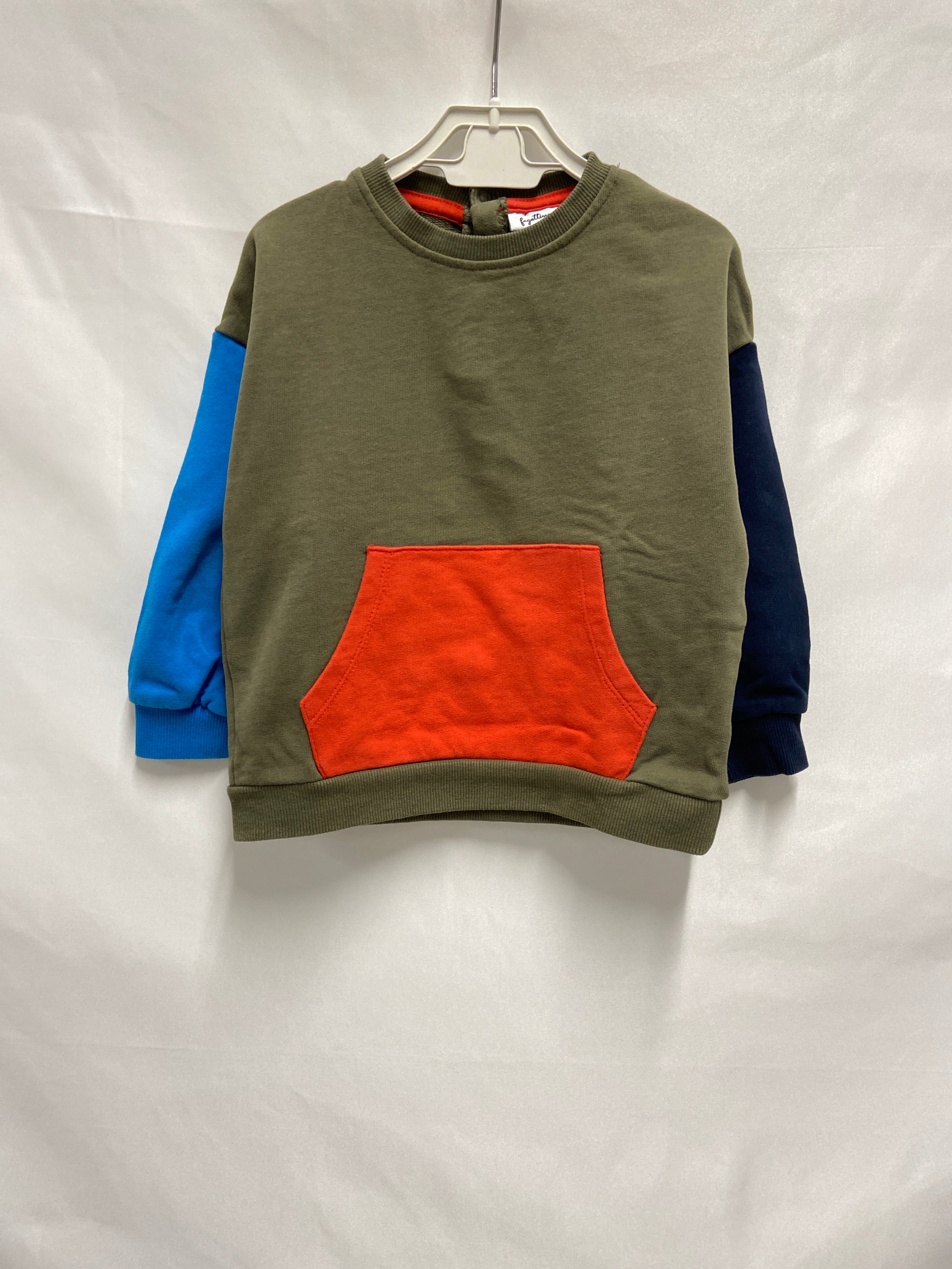 Questo originale felpa per bambini è un vero gioiellino per il guardaroba! Realizzata in morbido cotone, sfoggia un design trendy con maniche colorate che aggiungono un tocco vivace. Il bordo inferiore e le maniche blu, verde e navy si combinano perfettamente con la grande tasca frontale arancione, perfetta per riporre piccoli tesori. Con un fit comodo e accogliente, è ideale per le avventure all'aria aperta oppure per rilassarsi a casa. Pur essendo un capo usato, si presenta in ottime condizioni, pronto a garantire comfort e stile al tuo piccolo!