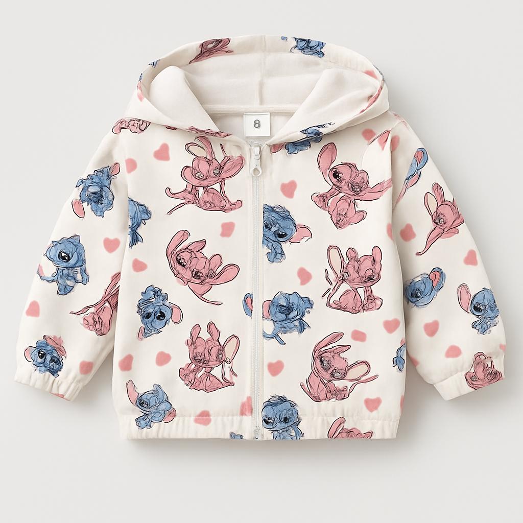 Questa adorabile giacca con cappuccio è perfetta per le piccole che amano la comodità e il divertimento! Realizzata in morbido cotone, presenta un colorato motivo con simpatici personaggi dei cartoni animati, che regala un tocco di allegria. Il design con cerniera e i polsini elasticizzati assicurano una vestibilità pratica e confortevole, ideale per le avventure quotidiane. Nonostante sia un capo usato, si trova in ottime condizioni, pronta a diventare il favorito della piccola. Un must-have per tutte le giornate in cui si desidera un look giocoso e alla moda!