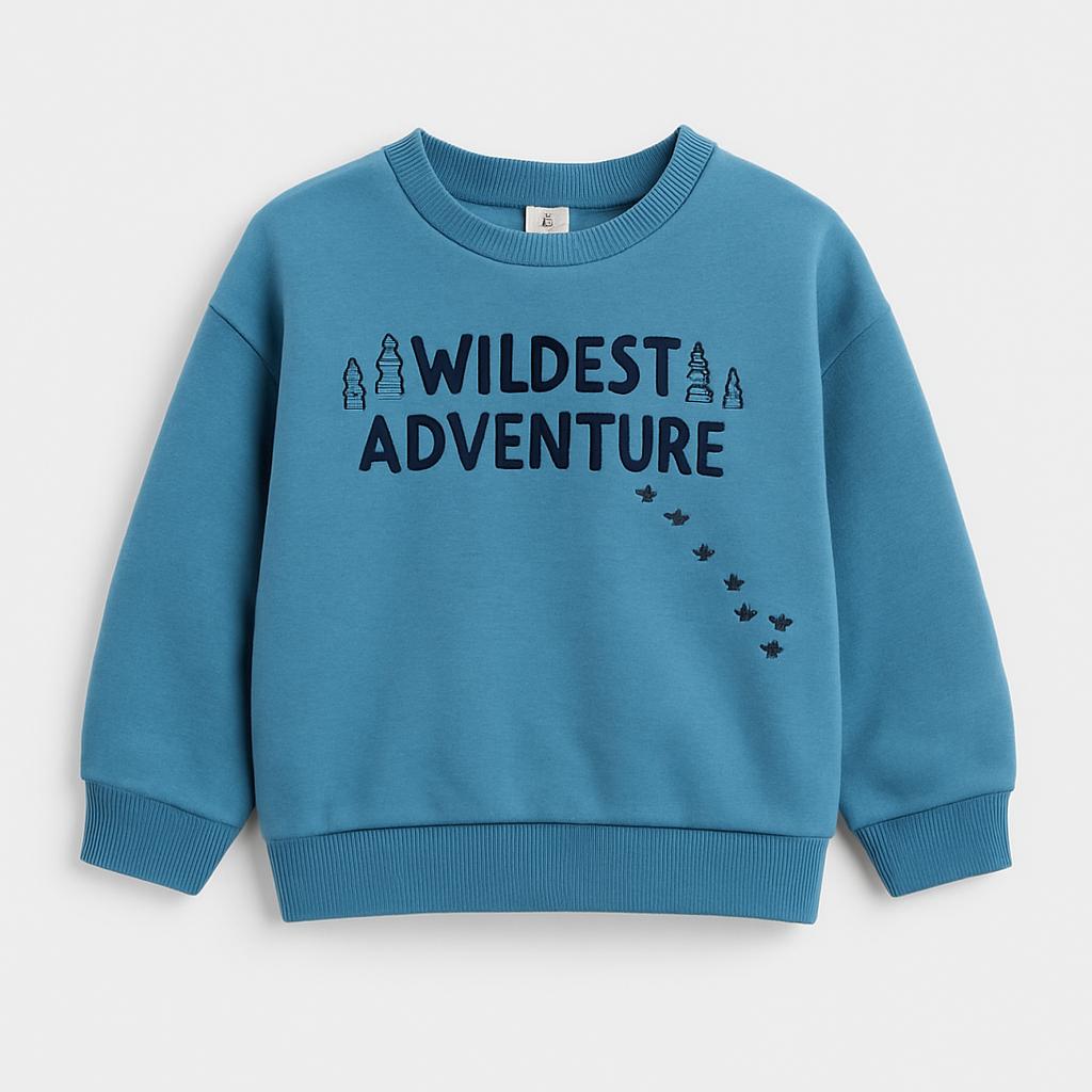 Questo affascinante sweatshirt di colore azzurro è perfetta per i piccoli esploratori! Con il suo comodo design a maniche lunghe, presenta la scritta "WILDEST ADVENTURE" e adorabili impronte di orsetti che incitano all’avventura. La morbida felpa garantisce calore e comfort durante le giornate più fresche, rendendola ideale per giochi all'aperto o momenti di svago in casa. Nonostante sia un capo usato, si presenta in ottime condizioni e promette di diventare un pezzo adorato del guardaroba del tuo bambino!