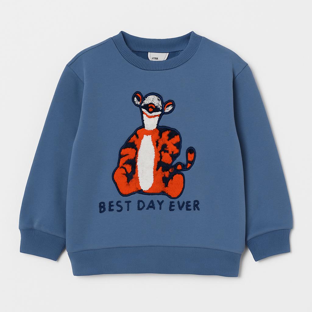 Questo adorabile felpa di marca Disney è perfetta per i piccoli amanti di Winnie the Pooh! Realizzata in un caldo e morbido cotone, presenta un vivace colore blu che riscalda subito il cuore. Sul fronte, il simpatico Tigger con il suo famoso sorriso è ricamato con cura, accompagnato dalla scritta "BEST DAY EVER".