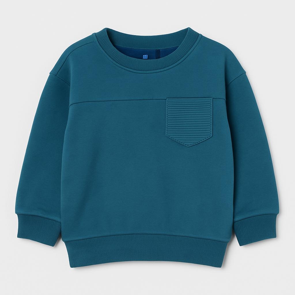 Questo adorabile maglione in morbido cotone blu petrolio è perfetto per tenere il tuo bambino caldo e alla moda! Con il suo design semplice e versatile, presenta una comoda tasca sul petto e polsini a costine che assicurano una vestibilità comoda. Ideale per le giornate fresche, questo felpa usata si adatta facilmente a jeans, pantaloni o leggings. Nonostante il suo passato, appare in ottime condizioni, pronto per nuove avventure! Perfetto per i piccoli che amano stare comodi senza rinunciare allo stile!