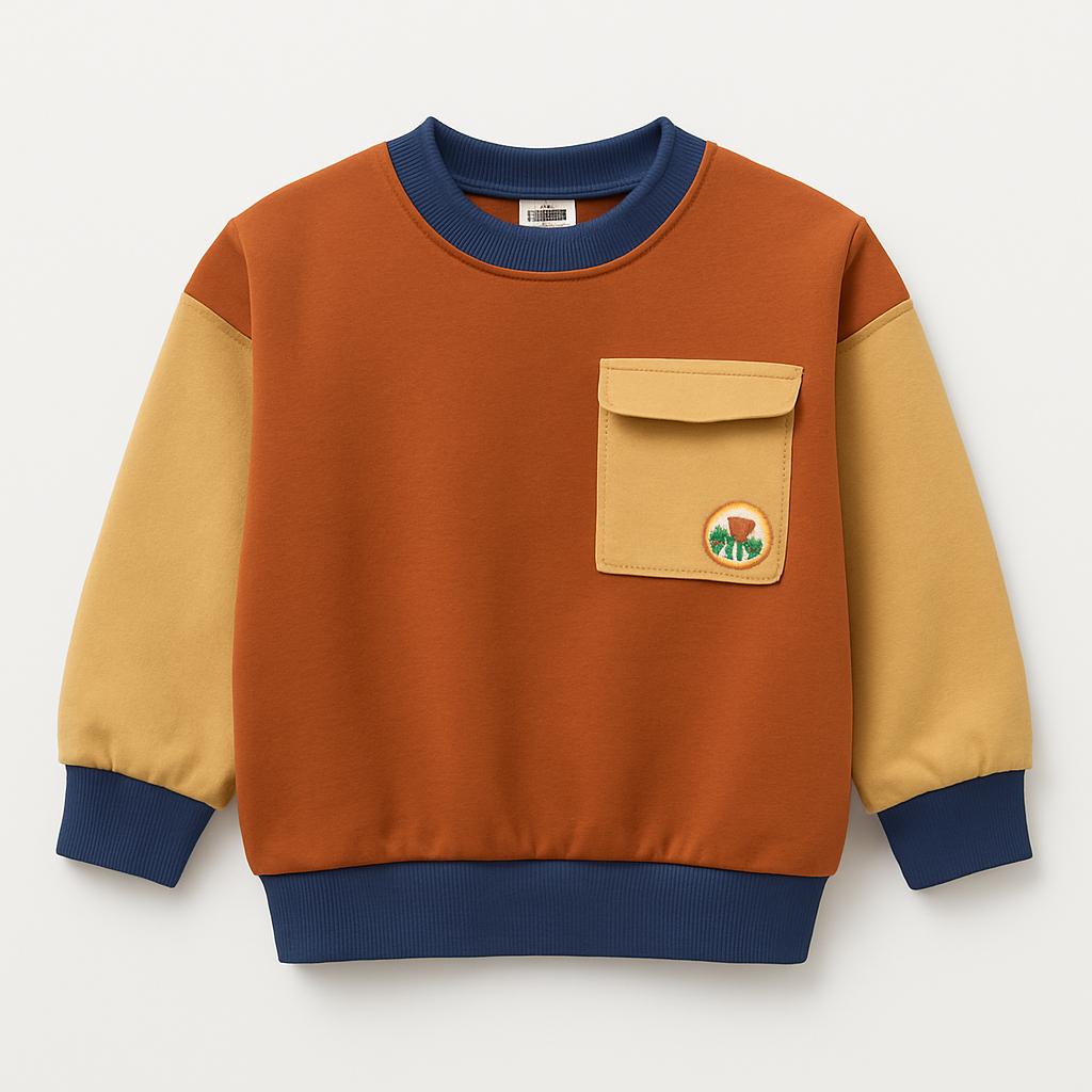 Questo delizioso pullover in colori caldi e avvolgenti è perfetto per il guardaroba autunnale del tuo bambino! Realizzato in morbido tessuto, presenta una combinazione di arancione e giallo che porta gioia e allegria. La tasca applicata sul petto è un tocco funzionale e divertente, mentre il colletto e i polsini blu navy aggiungono un bel contrasto. Questo capo è ideale per le avventure quotidiane, le giornate al parco e i pomeriggi di gioco, garantendo sempre comfort e stile. Nonostante sia usato, si presenta in ottime condizioni! Un must-have per le piccole esploratori!