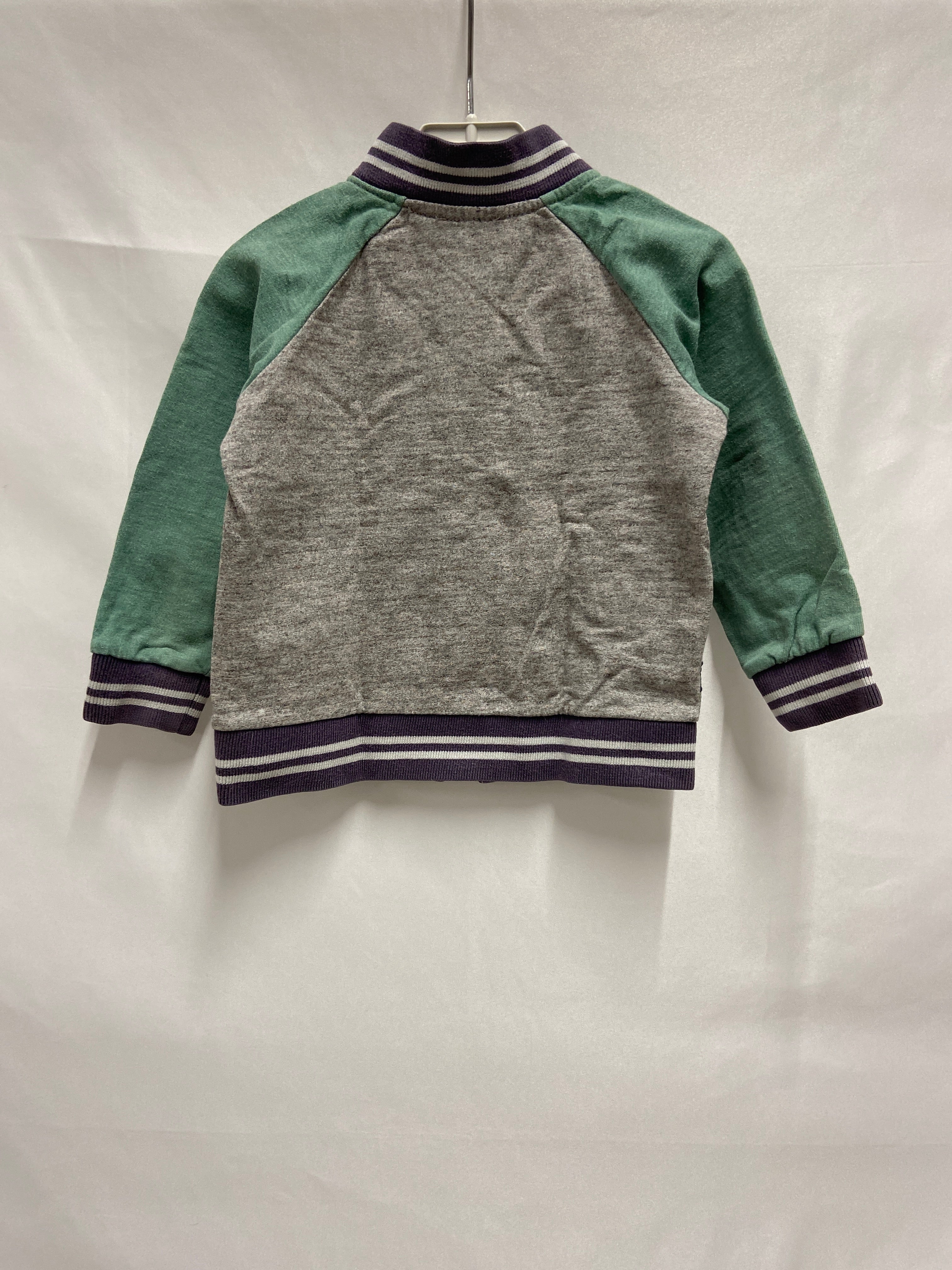 Questo adorabile bomber per bambini è un capo che sprizza freschezza e allegria! Realizzato in morbido cotone grigio con dettagli in verde, presenta un ricamo di un cagnolino simpatico e la scritta "I'm a little dog", perfetto per i piccoli amanti degli animali. Le maniche a contrasto e i polsini a righe donano un tocco trendy e sportivo, ideale per le avventure all'aperto o per un look casual. Nonostante sia un articolo usato, è in ottime condizioni e pronto ad essere indossato con orgoglio. Un must-have per ogni mini fashionista!