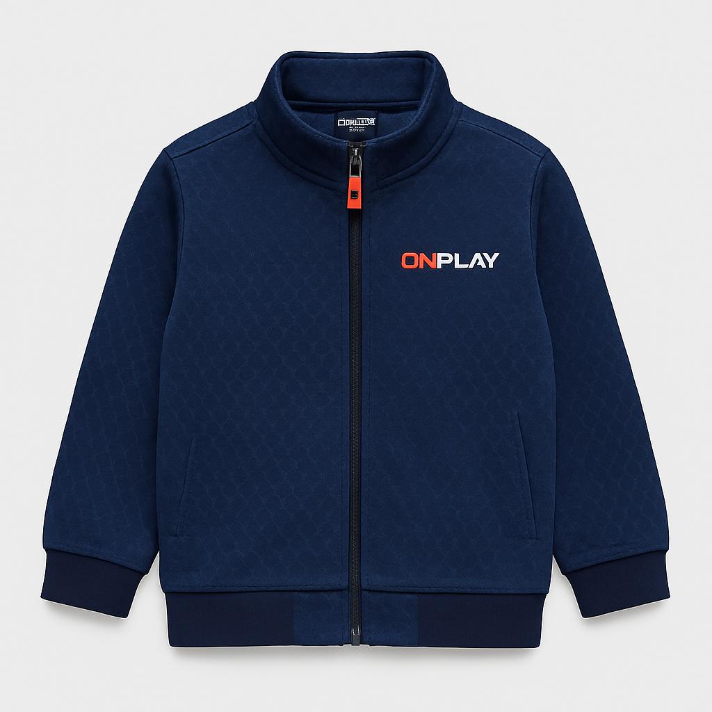 Questa giacca originale di ONDPLAY è perfetta per le piccole avventuriere! Il meraviglioso blu notte e il design geometrico rendono questo capo moderno e trendy. Dotata di una comoda zip, è facile da indossare e togliere, ideale per le giornate fresche. I dettagli arancioni aggiungono un tocco di vivacità e allegria. Nonostante sia un capo usato, si presenta in ottime condizioni, pronta a vestire il tuo piccolo in modo stiloso e confortevole per tante avventure all'aperto!