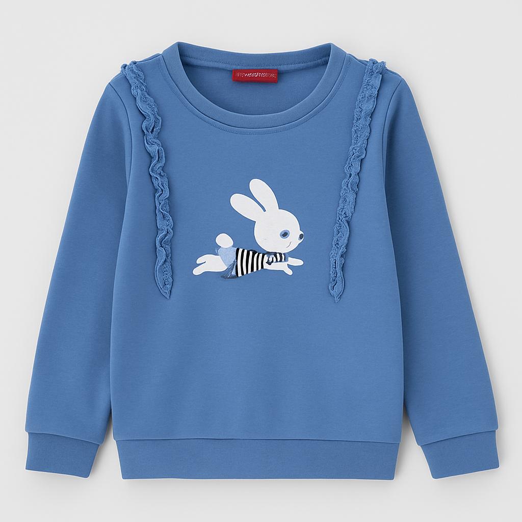 Questo adorabile maglione blu con un tenero coniglietto darà un tocco di magia al guardaroba della tua piccola! Realizzato in morbido materiale, offre comfort per tutta la giornata. La dolce applicazione del coniglietto in bianco e nero aggiunge un elemento giocoso, mentre le ruches lateralmente conferiscono un tocco di eleganza. Perfetto per le fresche giornate primaverili o autunnali, questo capo usato è in ottime condizioni e pronto per accompagnare la tua bimba in molte avventure! Un must-have per le piccole amanti del massimo comfort senza rinunciare allo stile!