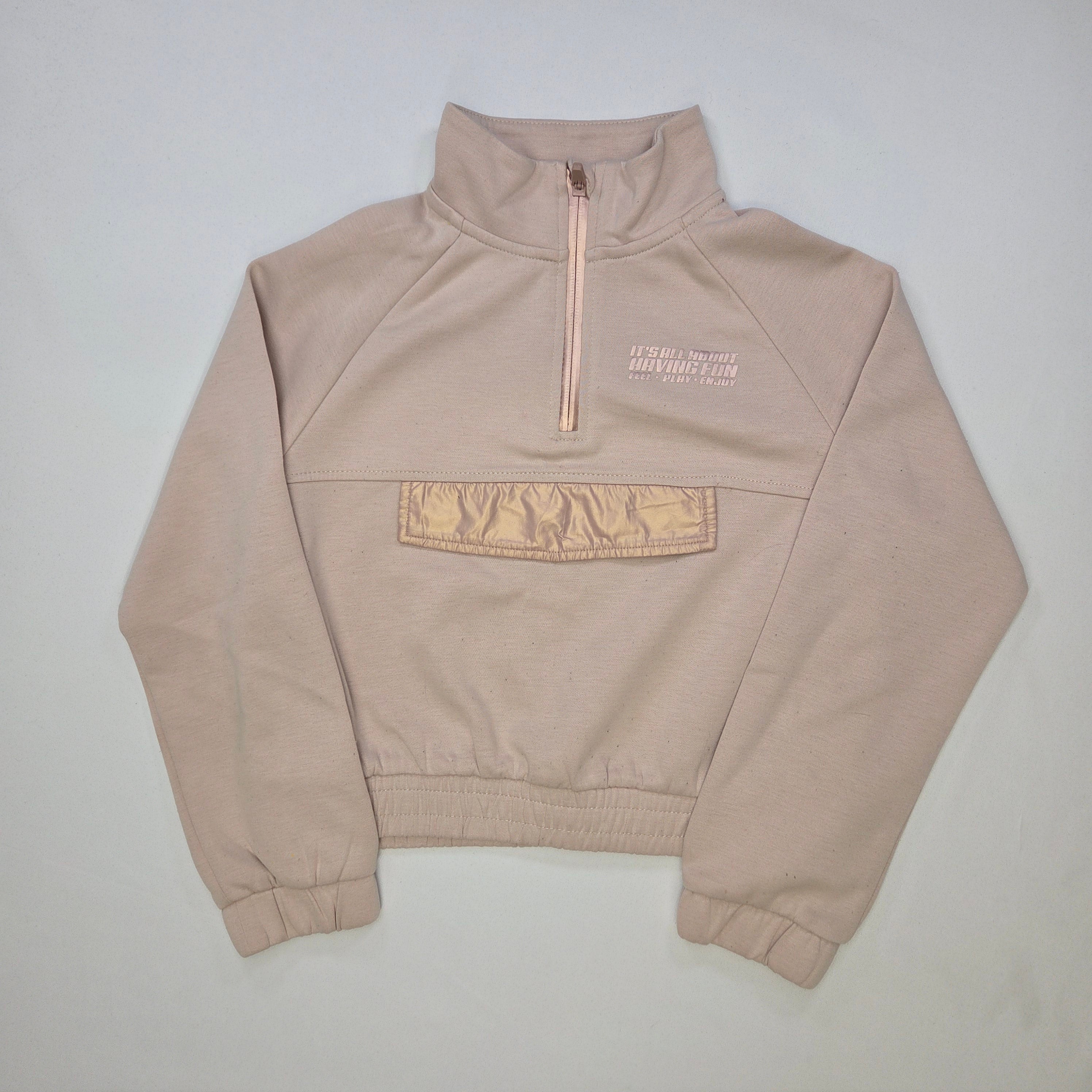 Questo adorabile pullover alla moda è perfetto per le piccole fashioniste alla ricerca di comfort e stile! Realizzato in un morbido tessuto rosa chiaro, il suo design con colletto alto e chiusura a zip regala un tocco di praticità e calore. La parte centrale è embellita da una tasca arricciata, ideale per riporre piccoli tesori, mentre le maniche lunghe conferiscono una vestibilità comoda e versatile. Nonostante sia un capo usato, si presenta in ottime condizioni, pronto a diventare il compagno ideale per le avventure quotidiane! Perfetto per l'autunno o le fresche serate invernali!