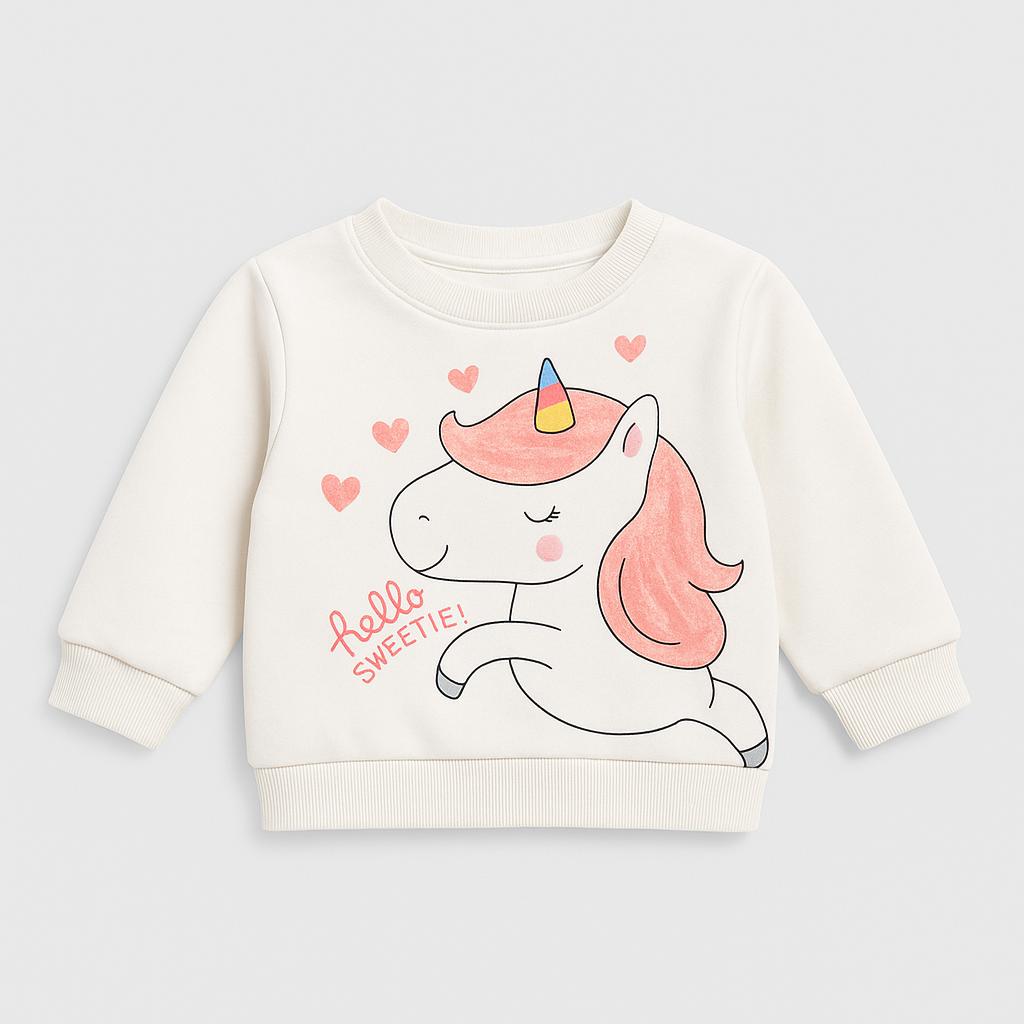 Questa deliziosa felpa bianca è perfetta per le piccole sognatrici! Decorata con un grazioso unicorno dai toni pastello, il design è arricchito da teneri cuoricini rosa. Realizzata in morbido cotone, offre comfort e calore durante le giornate più fresche. Le maniche lunghe e il taglio pratico rendono questo capo ideale per giocare e divertirsi, mantenendo sempre un tocco di magia. Anche se è un capo usato, si presenta in ottime condizioni, pronta a vivere nuove avventure! Un must-have per ogni piccola amante delle favole!