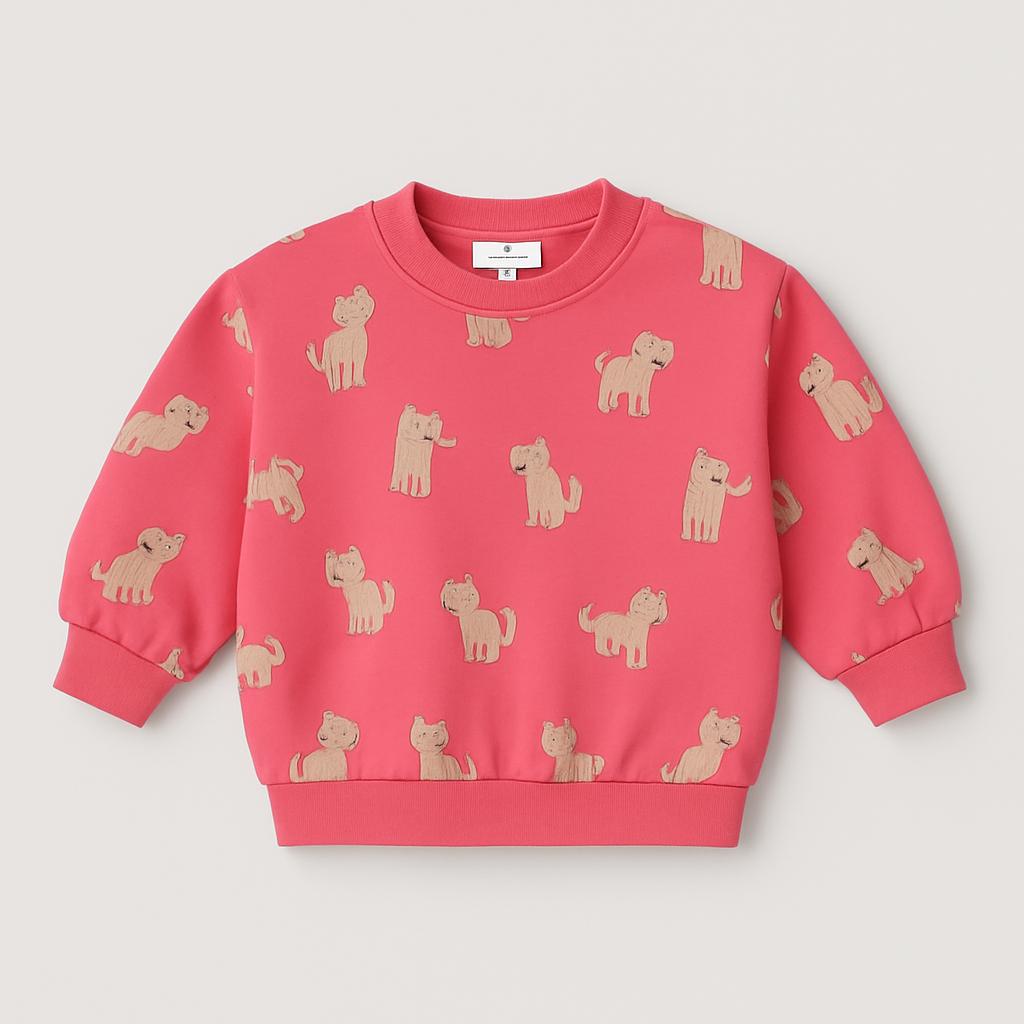 Questa adorabile felpa in rosso corallo è un vero colpo di fulmine per ogni piccolo amante degli animali! Decorata con illustrazioni giocose di cani, aggiunge un tocco di allegria e vivacità al guardaroba. Realizzata in morbido cotone, offre comfort e calore, perfetta per le fresche giornate primaverili. Le maniche a sbuffo donano un tocco trendy, mentre l'orlo elasticizzato garantisce una vestibilità comoda. Anche se è un capo usato, si presenta in ottime condizioni ed è pronto a indossare storie di avventure! Un must per le piccole esploratrici!