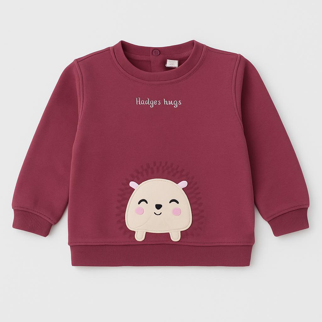 Scopri questo adorabile pullover in tonalità prugna, perfetto per le giornate fresche! Con un dolce ricamo di un riccio felice sul davanti, questo maglione è un inno alla tenerezza. Le maniche sbuffate e il collo a chiusura con bottoncino lo rendono pratico e comodo da indossare. Ideale per le piccole esploratrici che amano divertirsi mentre restano al caldo. Nonostante sia un capo usato, si presenta in ottime condizioni, pronto a diventare un pezzo unico nel guardaroba della tua bimba!