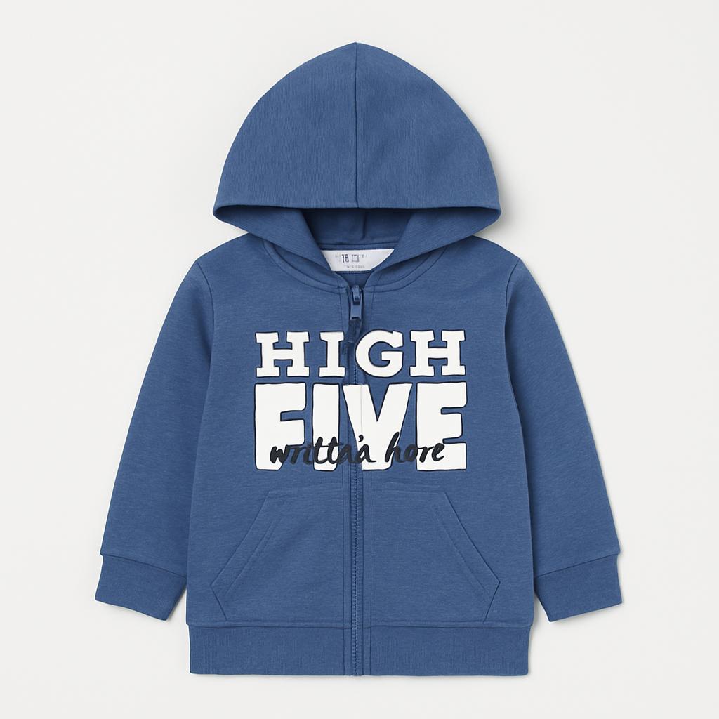 Questo accogliente felpa con cappuccio è perfetta per le piccole avventuriere! Realizzata in morbido cotone blu, presenta una chiusura a zip e un logo "HIGH FIVE" stampato in bianco sul fronte, che aggiunge un tocco trendy e spiritoso. Le maniche lunghe e il cappuccio la rendono ideale per le fresche serate estive o per i pomeriggi di gioco. Anche se usata, questa felpa è in ottime condizioni e pronta a diventare la compagna perfetta per il guardaroba della tua bambina. Un capo versatile e pratico, non può mancare nell'armadio di chi ama sentirsi comoda e alla moda!
