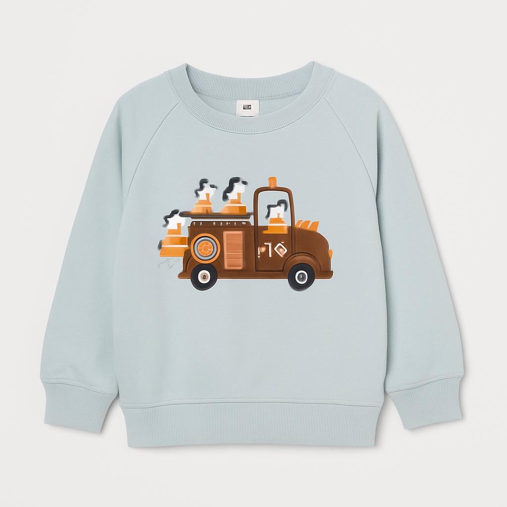 Questo morbido e delizioso felpa di colore azzurro chiaro è perfetta per i piccoli amanti delle avventure! Decorata con un'affascinante grafica di un camion dei pompieri e simpatici cani, questa felpa porta un tocco di allegria e fantasia. I dettagli vivaci e il taglio comodo sono ideali per assicurare massima libertà di movimento durante i giochi. Le maniche leggermente raglan e il bordo elasticizzato offrono comfort e stile, rendendola perfetta per le giornate fresche. In ottime condizioni, sarà un'aggiunta adorabile al guardaroba del tuo piccolo!