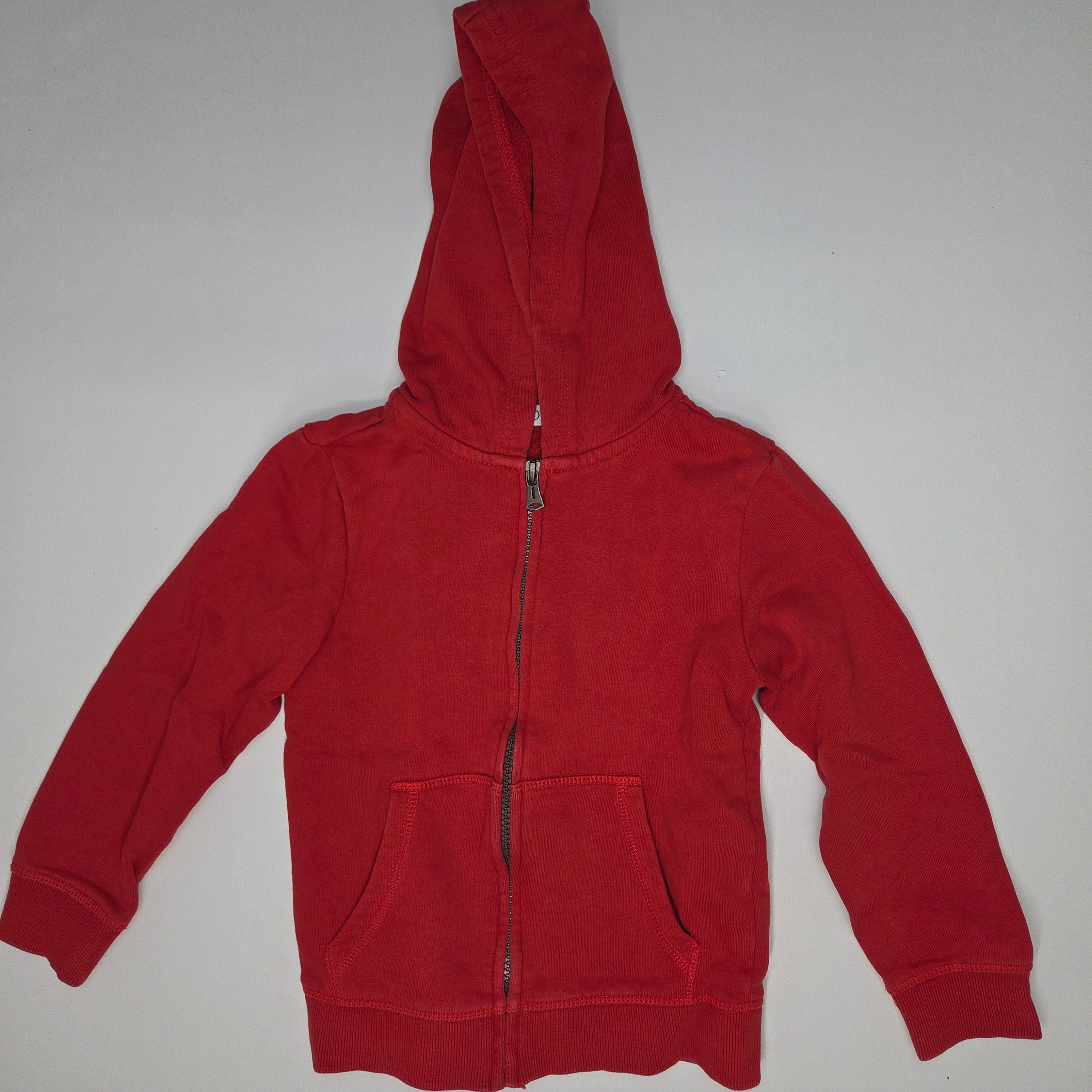 Questa vivace felpa rossa con cappuccio è un'aggiunta perfetta al guardaroba dei più piccoli! Realizzata in morbido cotone, offre calore e comfort per ogni avventura. Il pratico zip frontale rende facile indossarla e toglierla, mentre le tasche sul davanti sono ideali per riporre piccoli tesori o scaldare le mani. Nonostante sia un capo usato, appare in ottime condizioni, pronta a dare colore e stile ai look quotidiani dei bambini. Perfetta per le giornate fresche e per attività all'aperto, questa felpa è un indispensabile alleato per i piccoli esploratori!