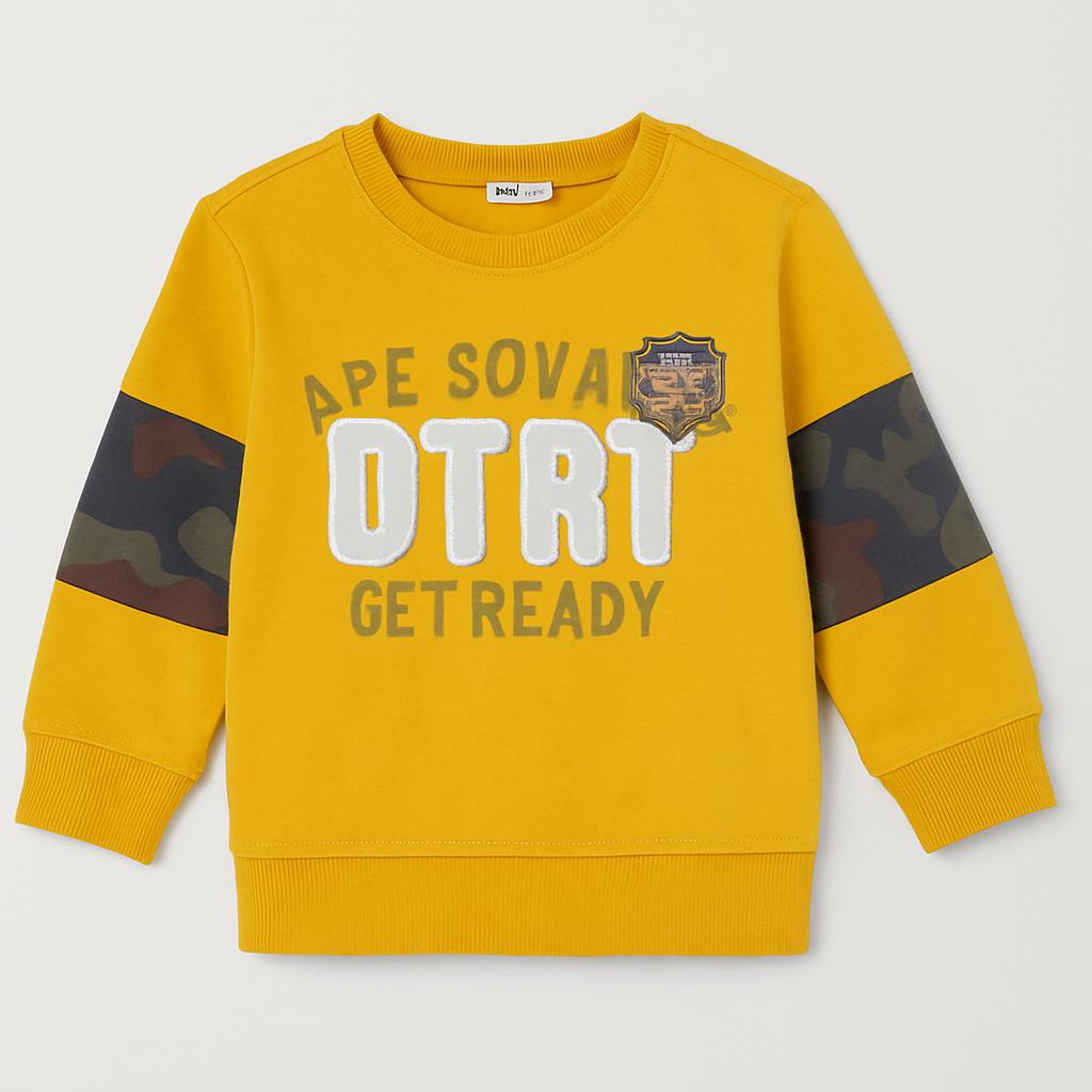 Questo vivace e comodo pullover giallo è perfetto per i piccoli avventurieri! Con il suo design accattivante, presenta la scritta “DTRT” in un mix di colori e un tocco di stile con le maniche camo. Realizzato in un morbido tessuto, assicura calore e comfort durante le giornate più fresche. Il taglio ampio lo rende ideale per muoversi liberamente, mentre il colore solare aggiunge un tocco di allegria al guardaroba. Un capo usato ma in ottime condizioni, pronto per essere indossato da un piccolo esploratore!