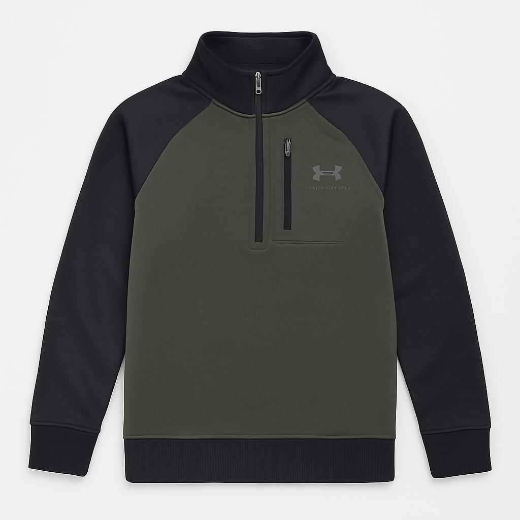 Questo pratico e alla moda pullover di Under Armour è perfetto per i giovani spiriti sportivi! Realizzato in un morbido tessuto elasticizzato, offre comfort e calore senza compromettere la libertà di movimento. Il design a due colori, con una base verde oliva e maniche nere, aggiunge un tocco cool e moderno.
