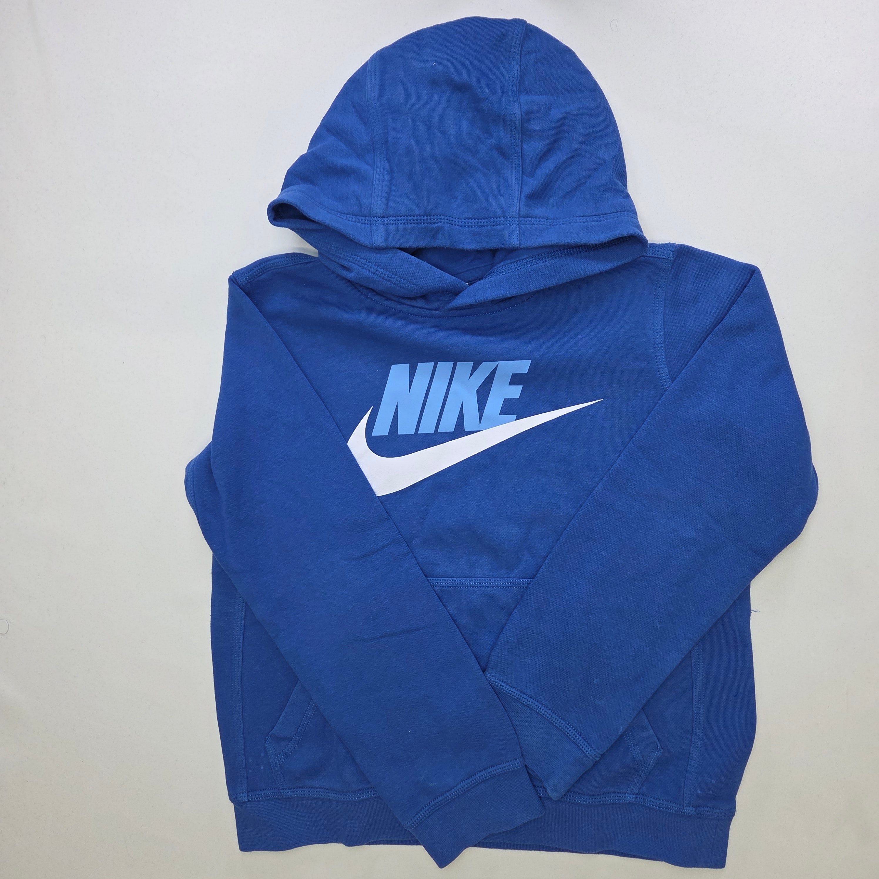 Questo elegante hoodie di Nike in un vivace blu è perfetto per i piccoli sportivi! Realizzato in morbido cotone, offre calore e comfort durante le giornate più fresche. La caratteristica stampa in bianco del famoso logo aggiunge un tocco di stile urban chic. Con una comoda attillatura e un cappuccio avvolgente, è ideale per attività all'aperto, scuola o semplicemente per rilassarsi a casa. Nonostante sia un capo usato, è in ottime condizioni e pronto a diventare un must-have nel guardaroba dei tuoi bambini!
