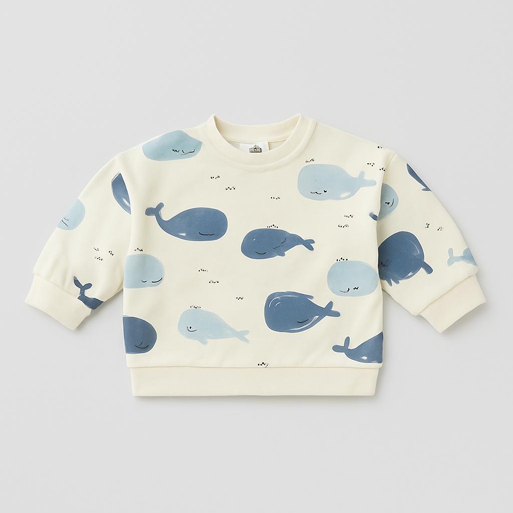 Questo morbido e adorabile pullover è un vero sogno per i piccoli amanti del mare! Realizzato in un cotone leggero e confortevole, presenta una simpatica stampa di balene in diverse tonalità di blu su uno sfondo bianco. Le maniche lunghe e il taglio loose lo rendono ideale per le giornate fresche, perfetto per avventure in giardino o passeggiate al parco. Nonostante sia un capo usato, è in ottimo stato e pronto a diventare il preferito di ogni bambino. Un must-have per piccoli esploratori!