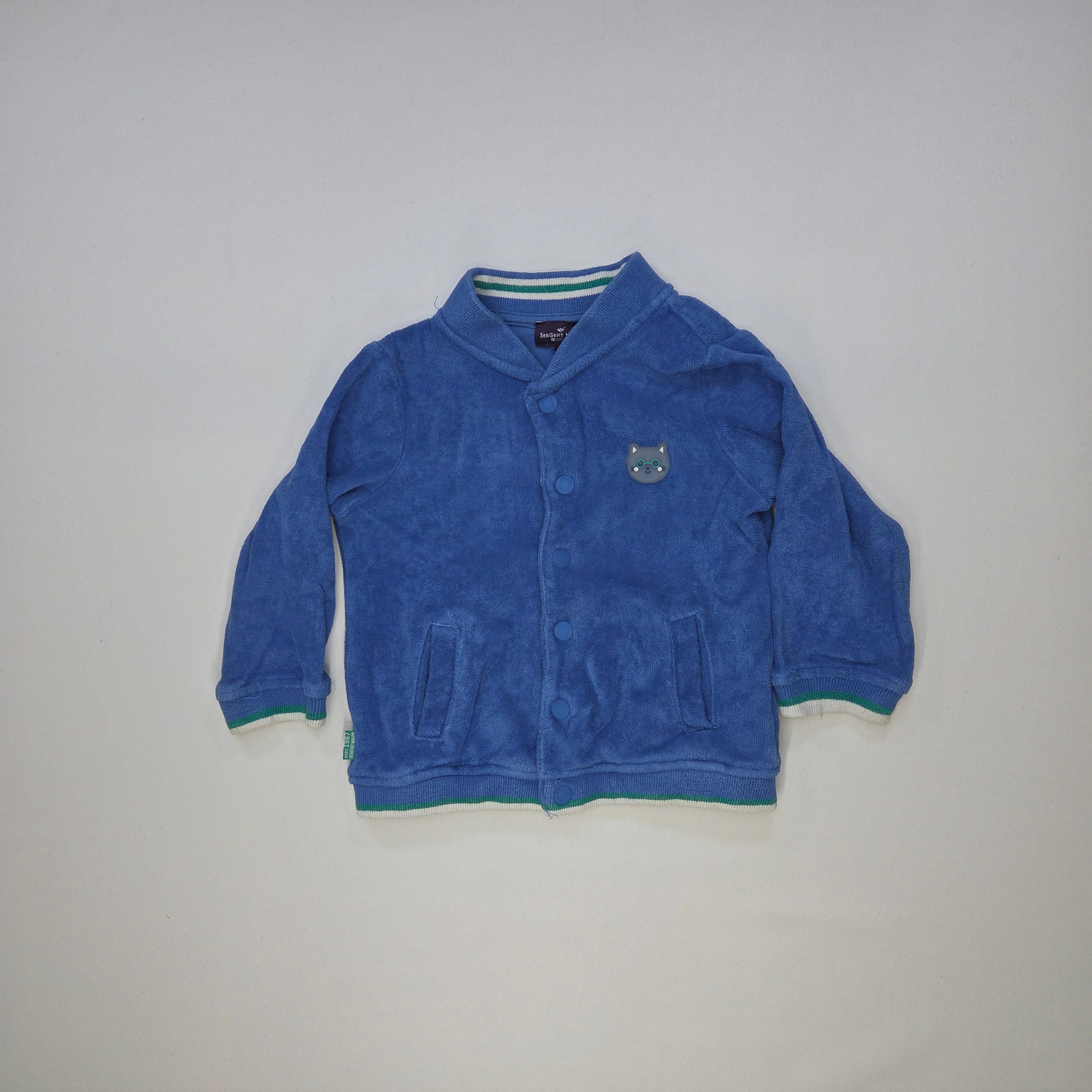 Questo delizioso cardigan blu, perfetto per i piccoli avventurieri, è realizzato in un morbido tessuto felpato che offre calore e comodità. Il design a bottoni con colletto rende il capo ancora più affascinante. Un adorabile ricamo di un gatto sul cuore aggiunge un tocco gioioso e giocoso, mentre le finiture verdi lungo i polsini e il colletto donano un pizzico di stile. Perfetto per le fresche giornate invernali o come strato extra nelle serate primaverili, è un capo usato ma in ottime condizioni, ideale per completare il guardaroba di ogni piccolo amante degli animali!