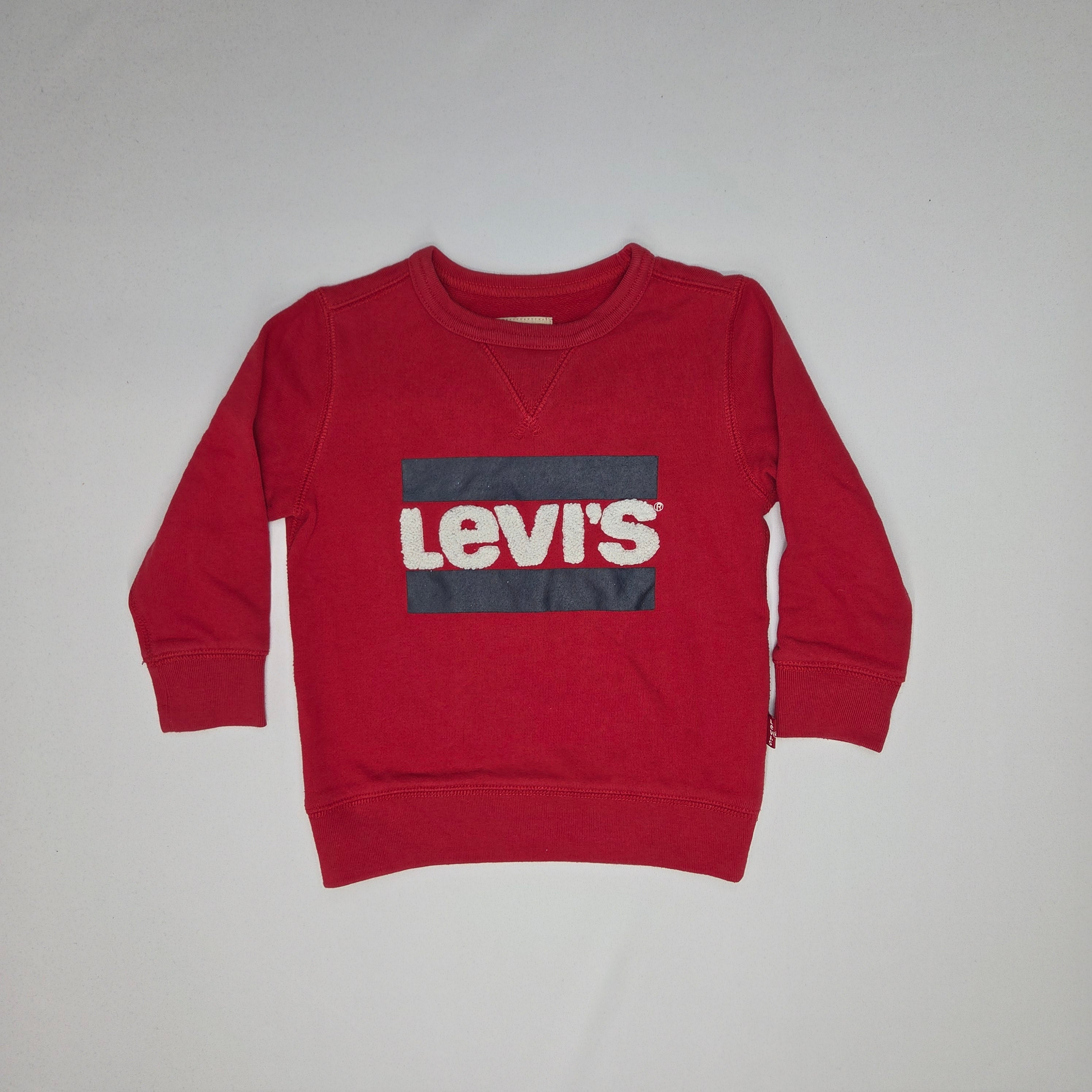 Questo caldo e accogliente sweatshirt di marca Levi's è perfetto per i piccoli avventurieri! Realizzato in morbido cotone, è di un vivace rosso che cattura l'attenzione. Sul davanti, il logo Levi's in pelliccia sintetica aggiunge un tocco di originalità e stile. Le maniche lunghe e il colletto a giro completano un look casual e confortevole, ideale per qualsiasi occasione, dalla scuola ai weekend giocosi. Nonostante sia un capo usato, è in ottime condizioni, pronto per nuove avventure. Un must-have per ogni piccola fashionista!